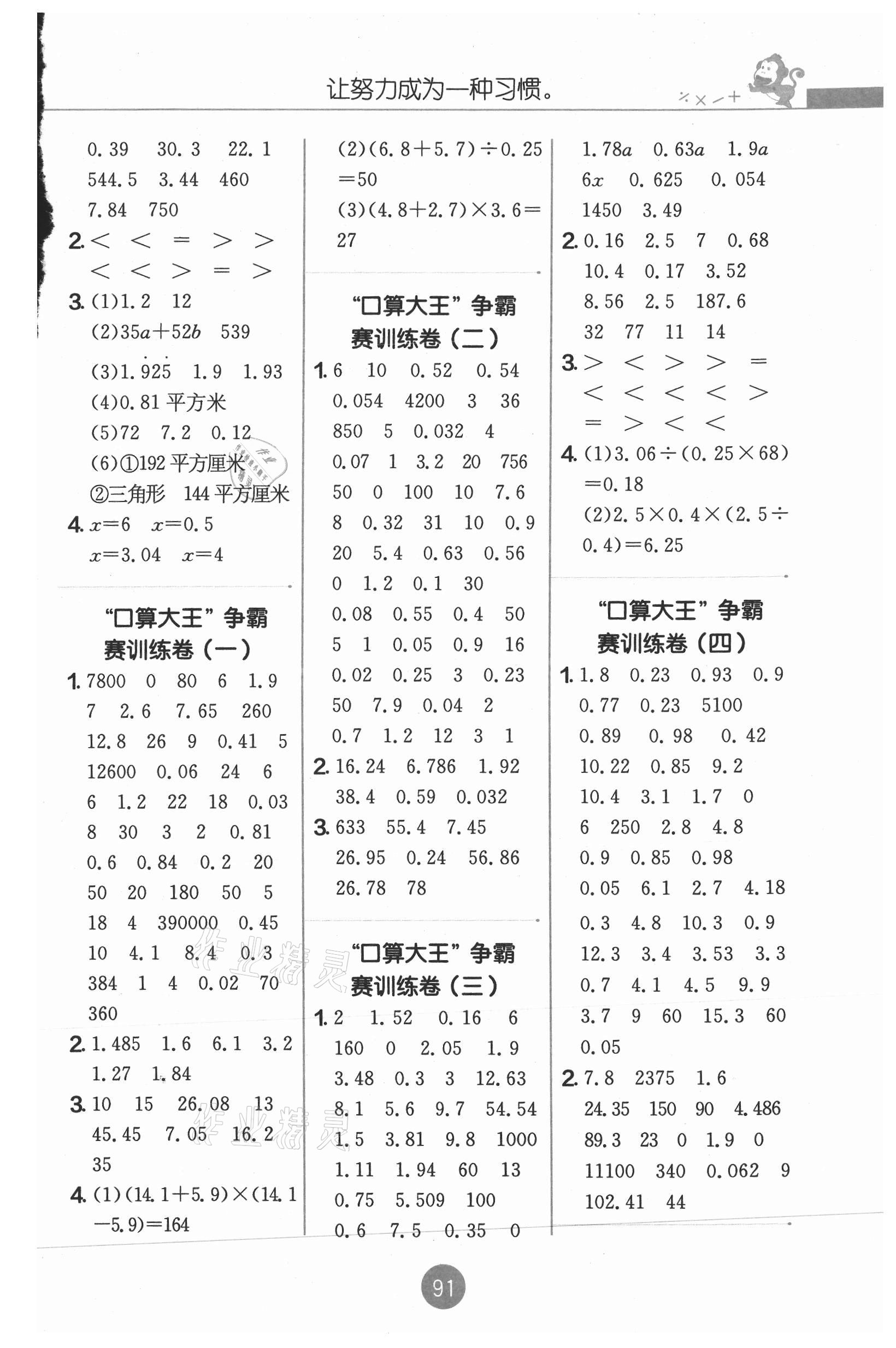 2021年口算心算速算天天练江苏人民出版社五年级数学上册人教版