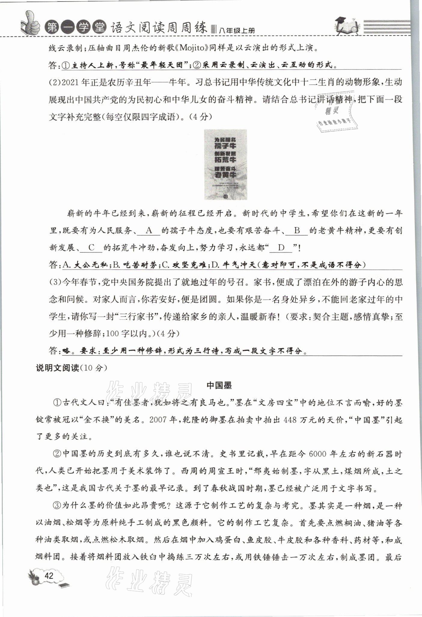 注:目前有些书本章节名称可能整理的还不是很完善,但都是按照顺序排列的,请同学们按照顺序仔细查找。练习册 2021年第一学堂语文阅读周周练八年级上册人教版 答案主要是用来给同学们做完题方便对答案用的,请勿直接抄袭。