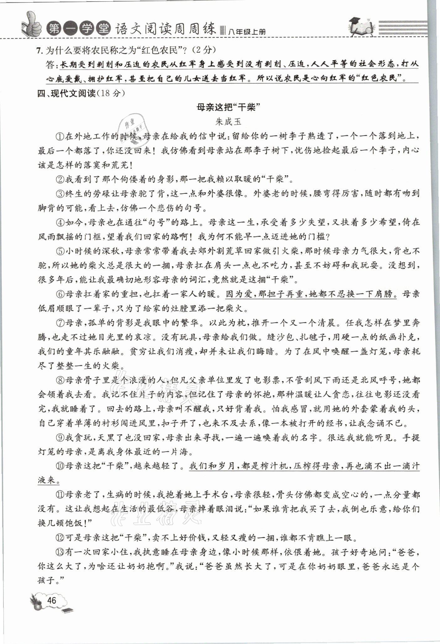 2021年第一学堂语文阅读周周练八年级上册人教版