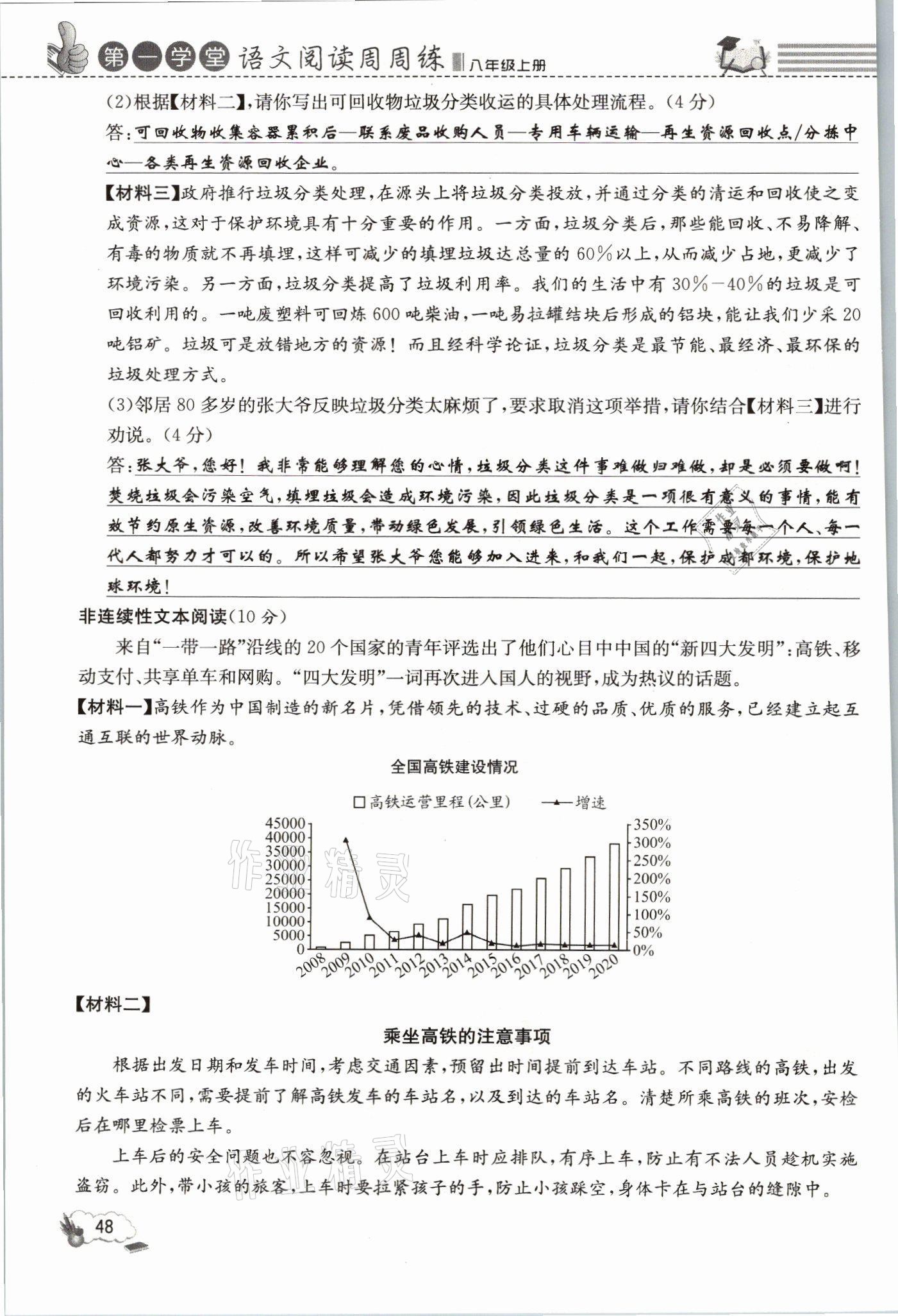 2021年第一学堂语文阅读周周练八年级上册人教版