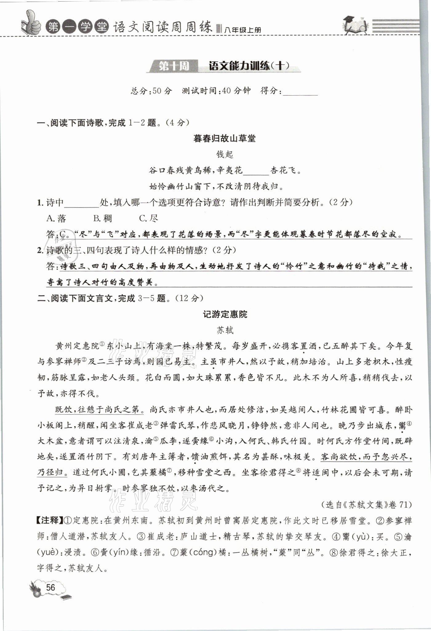 2021年第一学堂语文阅读周周练八年级上册人教版