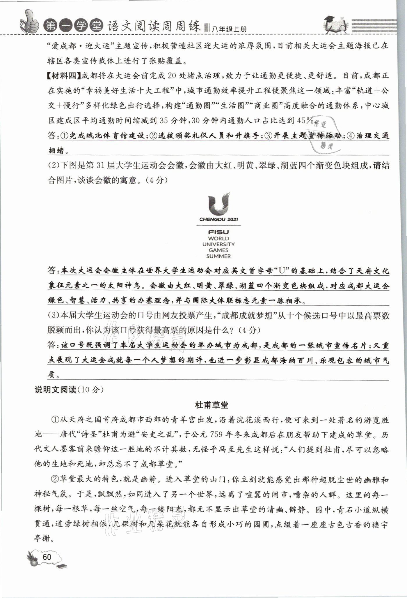 2021年第一学堂语文阅读周周练八年级上册人教版