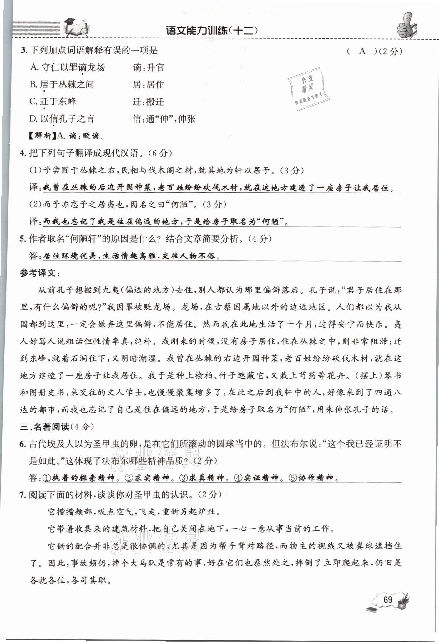 - 参考答案第69页