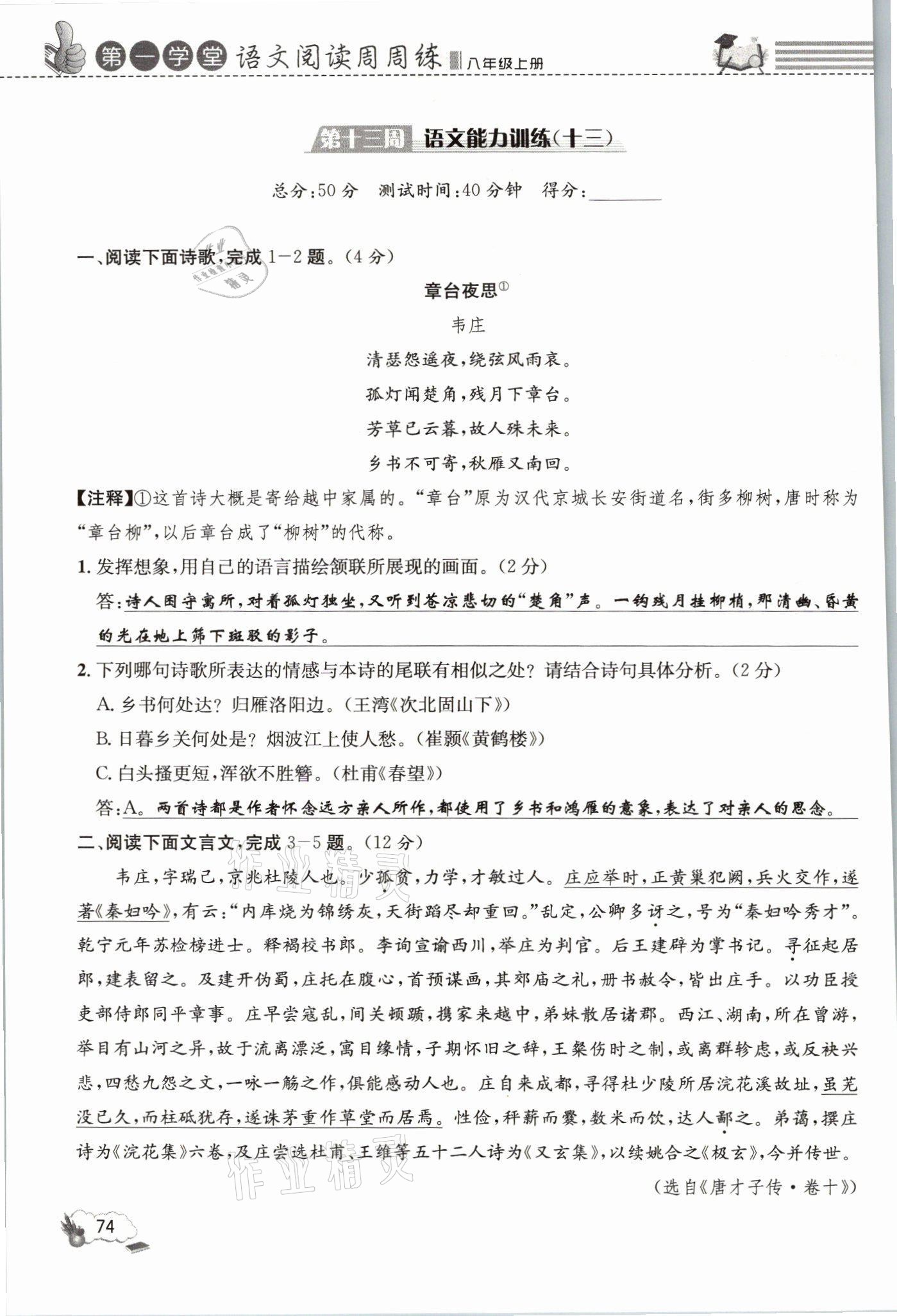 2021年第一学堂语文阅读周周练八年级上册人教版