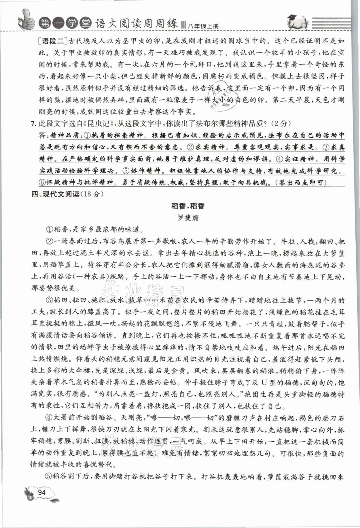 2021年第一学堂语文阅读周周练八年级上册人教版