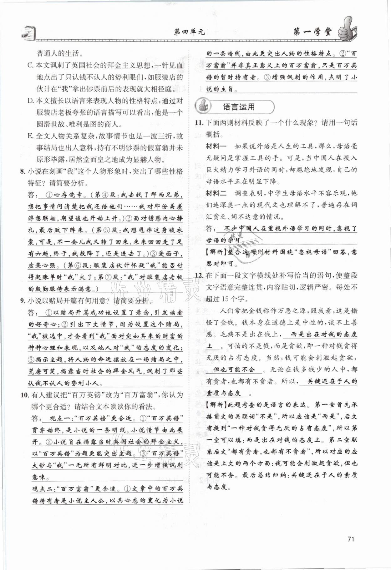 - 参考答案第71页