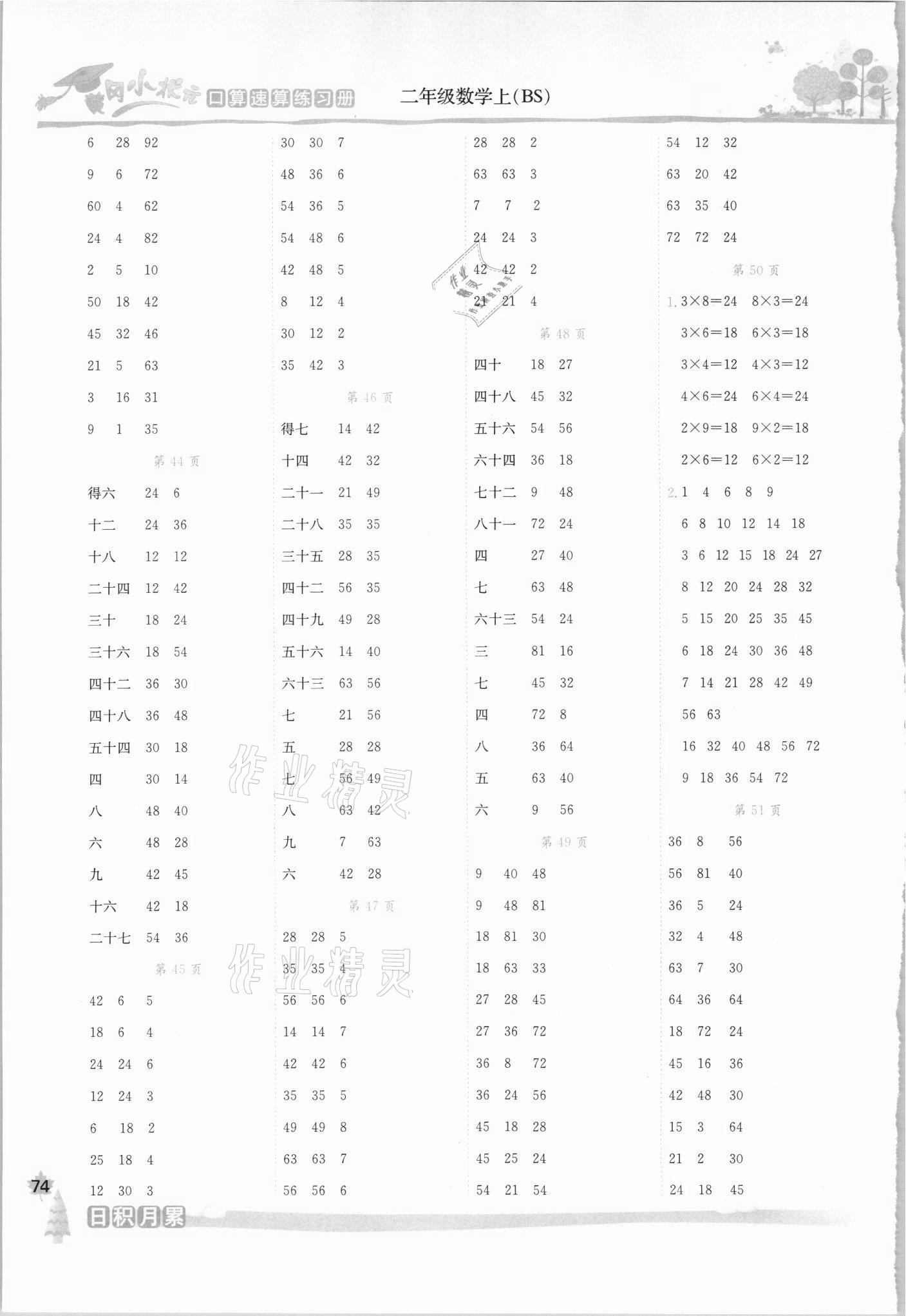 注:目前有些书本章节名称可能整理的还不是很完善,但都是按照顺序排列的,请同学们按照顺序仔细查找。练习册 2021年黄冈小状元口算速算练习册二年级数学上册北师大版 答案主要是用来给同学们做完题方便对答案用的,请勿直接抄袭。