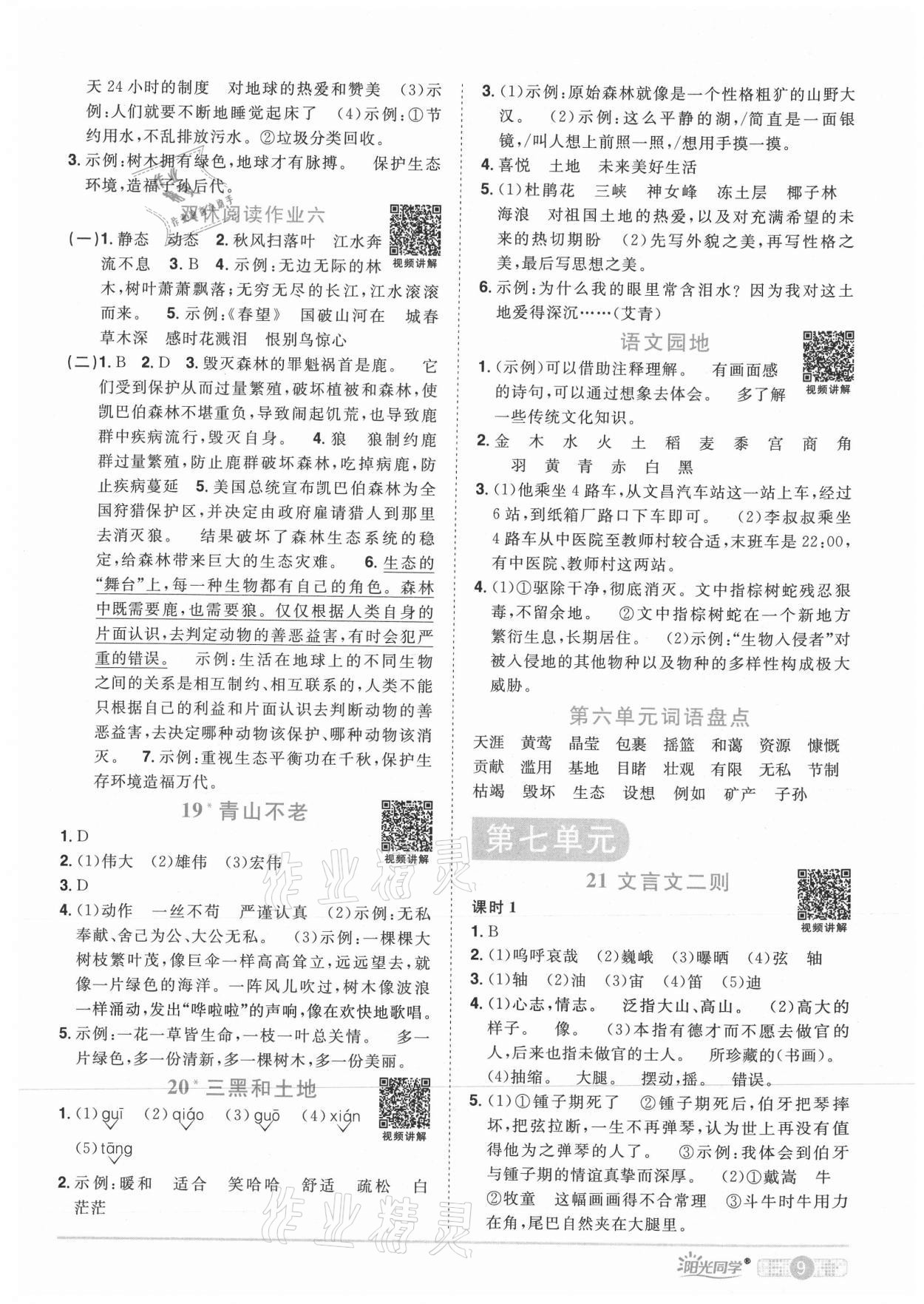 注:目前有些书本章节名称可能整理的还不是很完善,但都是按照顺序排列的,请同学们按照顺序仔细查找。练习册 2021年阳光同学课时优化作业六年级语文上册人教版湖北专版 答案主要是用来给同学们做完题方便对答案用的,请勿直接抄袭。