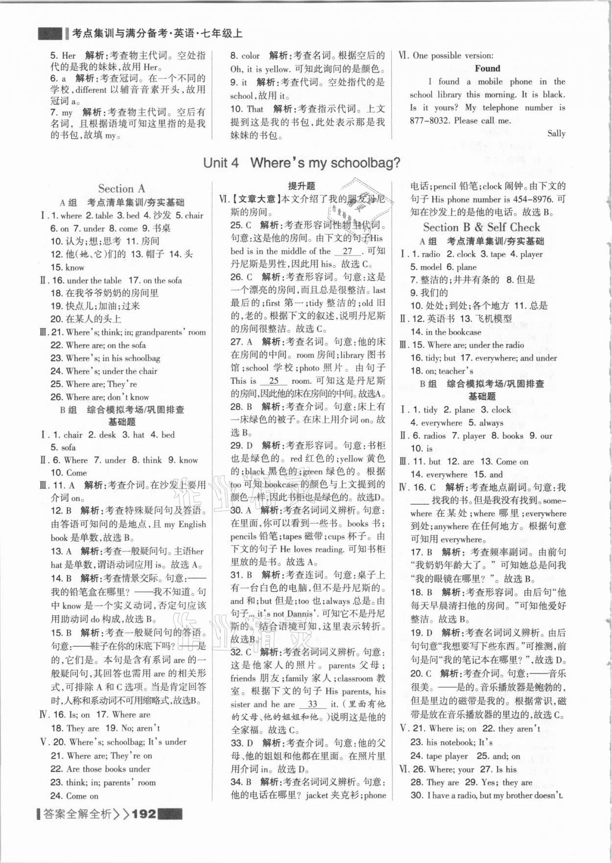 注:目前有些书本章节名称可能整理的还不是很完善,但都是按照顺序排列的,请同学们按照顺序仔细查找。练习册 2021年考点集训与满分备考七年级英语上册人教版 答案主要是用来给同学们做完题方便对答案用的,请勿直接抄袭。