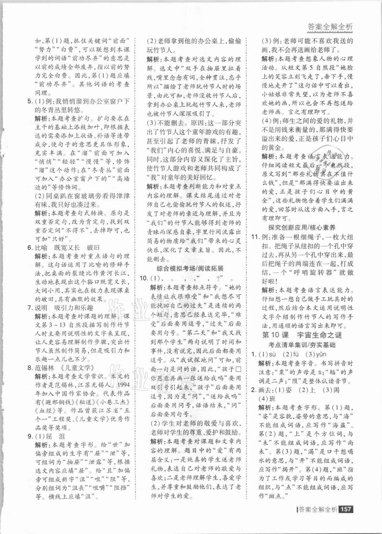 注:目前有些书本章节名称可能整理的还不是很完善,但都是按照顺序排列的,请同学们按照顺序仔细查找。练习册 2021年考点集训与满分备考六年级语文上册人教版 答案主要是用来给同学们做完题方便对答案用的,请勿直接抄袭。