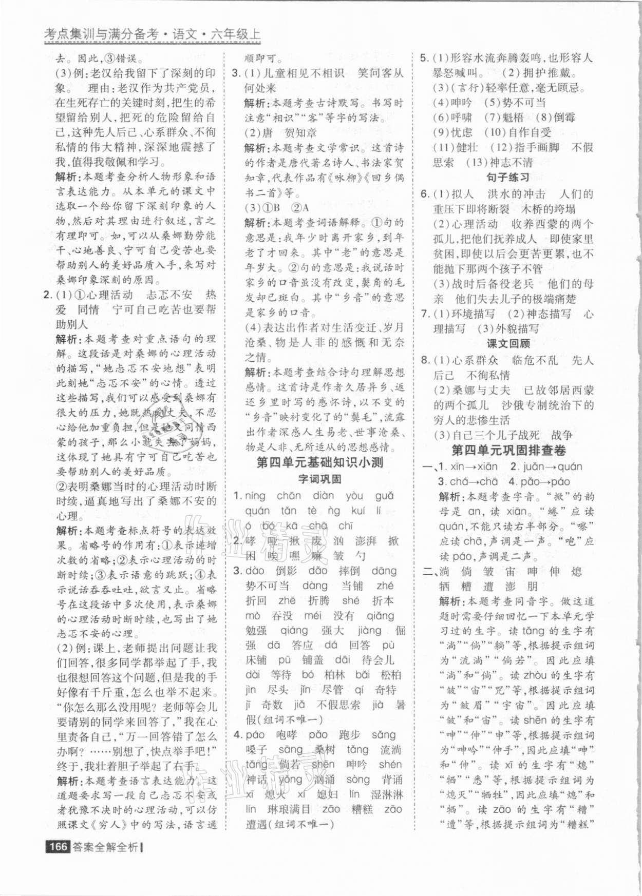 注:目前有些书本章节名称可能整理的还不是很完善,但都是按照顺序排列的,请同学们按照顺序仔细查找。练习册 2021年考点集训与满分备考六年级语文上册人教版 答案主要是用来给同学们做完题方便对答案用的,请勿直接抄袭。