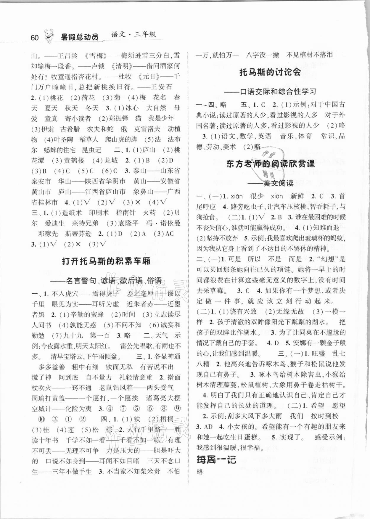 注:目前有些书本章节名称可能整理的还不是很完善,但都是按照顺序排列的,请同学们按照顺序仔细查找。练习册 2021年暑假总动员三年级语文人教版 答案主要是用来给同学们做完题方便对答案用的,请勿直接抄袭。