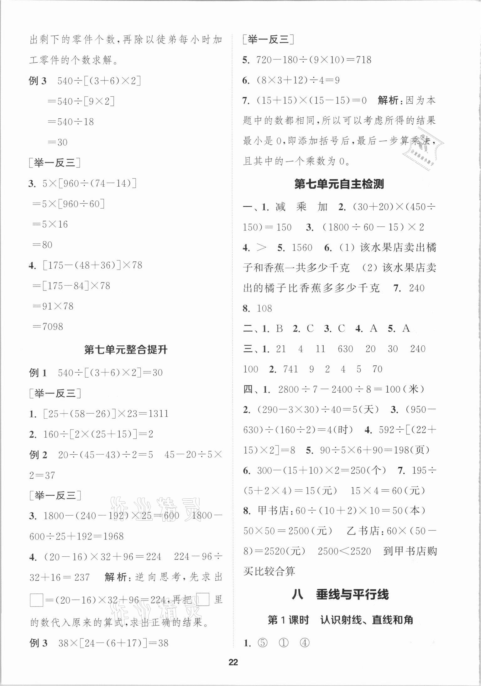 2021年金钥匙1加1课时作业四年级数学上册国标江苏版