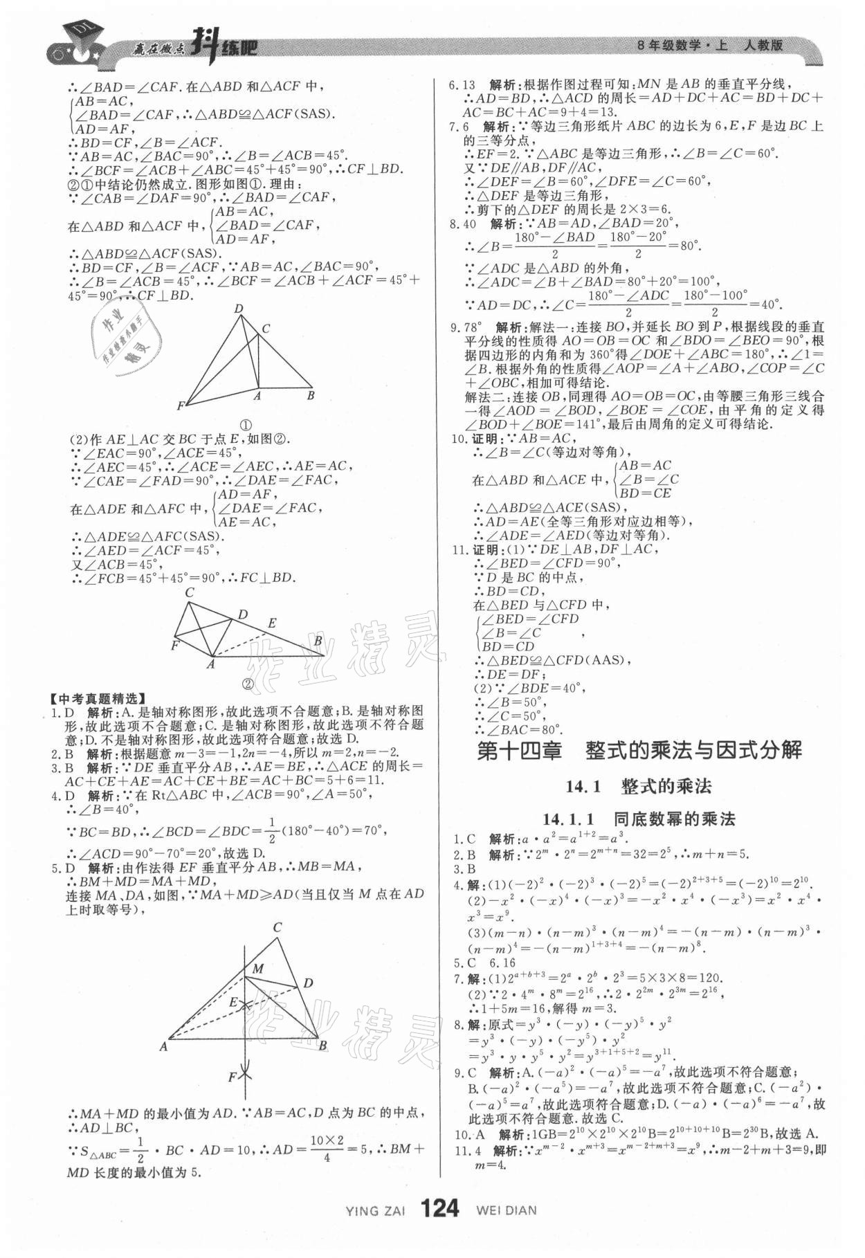注:目前有些书本章节名称可能整理的还不是很完善,但都是按照顺序排列的,请同学们按照顺序仔细查找。练习册 2021年抖练吧八年级数学上册人教版 答案主要是用来给同学们做完题方便对答案用的,请勿直接抄袭。