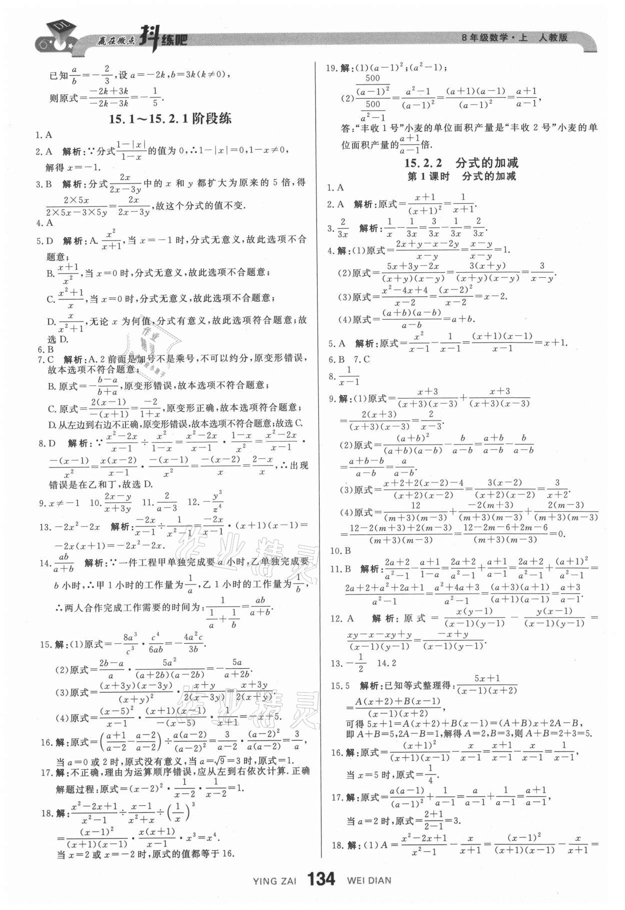 注:目前有些书本章节名称可能整理的还不是很完善,但都是按照顺序排列的,请同学们按照顺序仔细查找。练习册 2021年抖练吧八年级数学上册人教版 答案主要是用来给同学们做完题方便对答案用的,请勿直接抄袭。