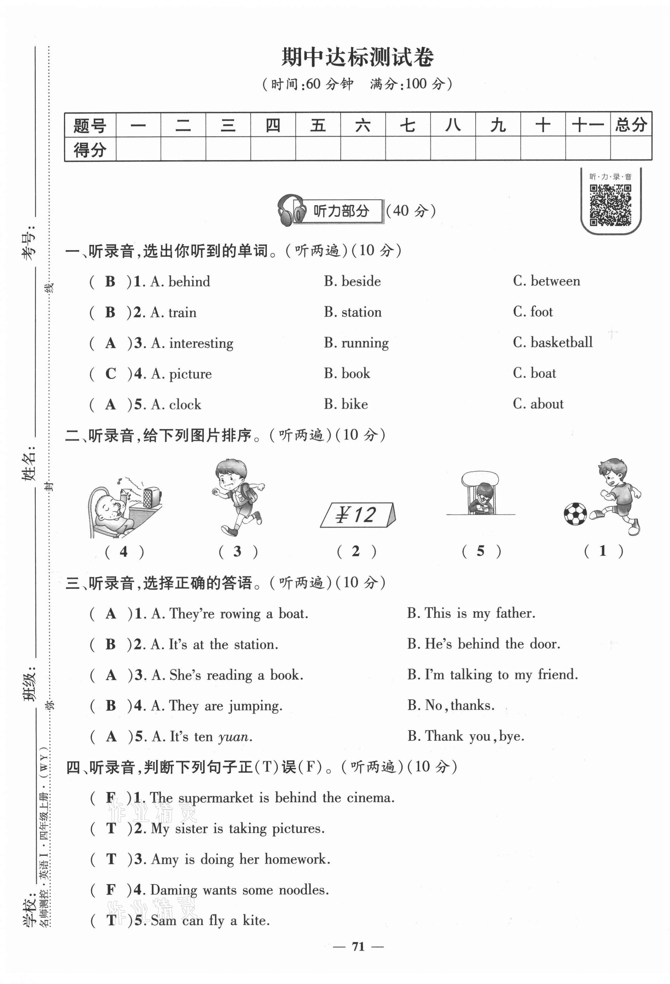 注:目前有些书本章节名称可能整理的还不是很完善,但都是按照顺序排列的,请同学们按照顺序仔细查找。练习册 2021年名师测控四年级英语上册外研版 答案主要是用来给同学们做完题方便对答案用的,请勿直接抄袭。