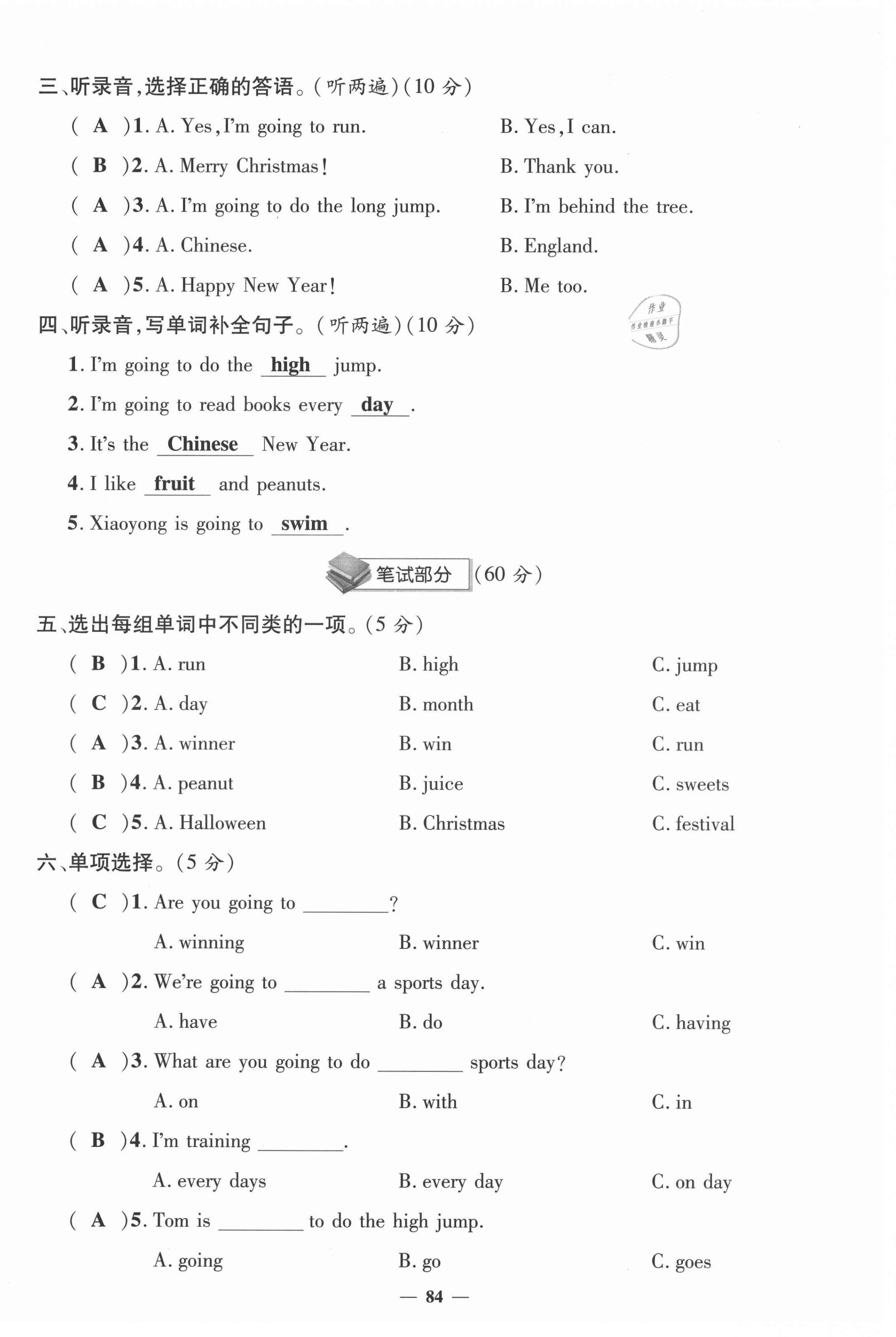 - 参考答案第84页