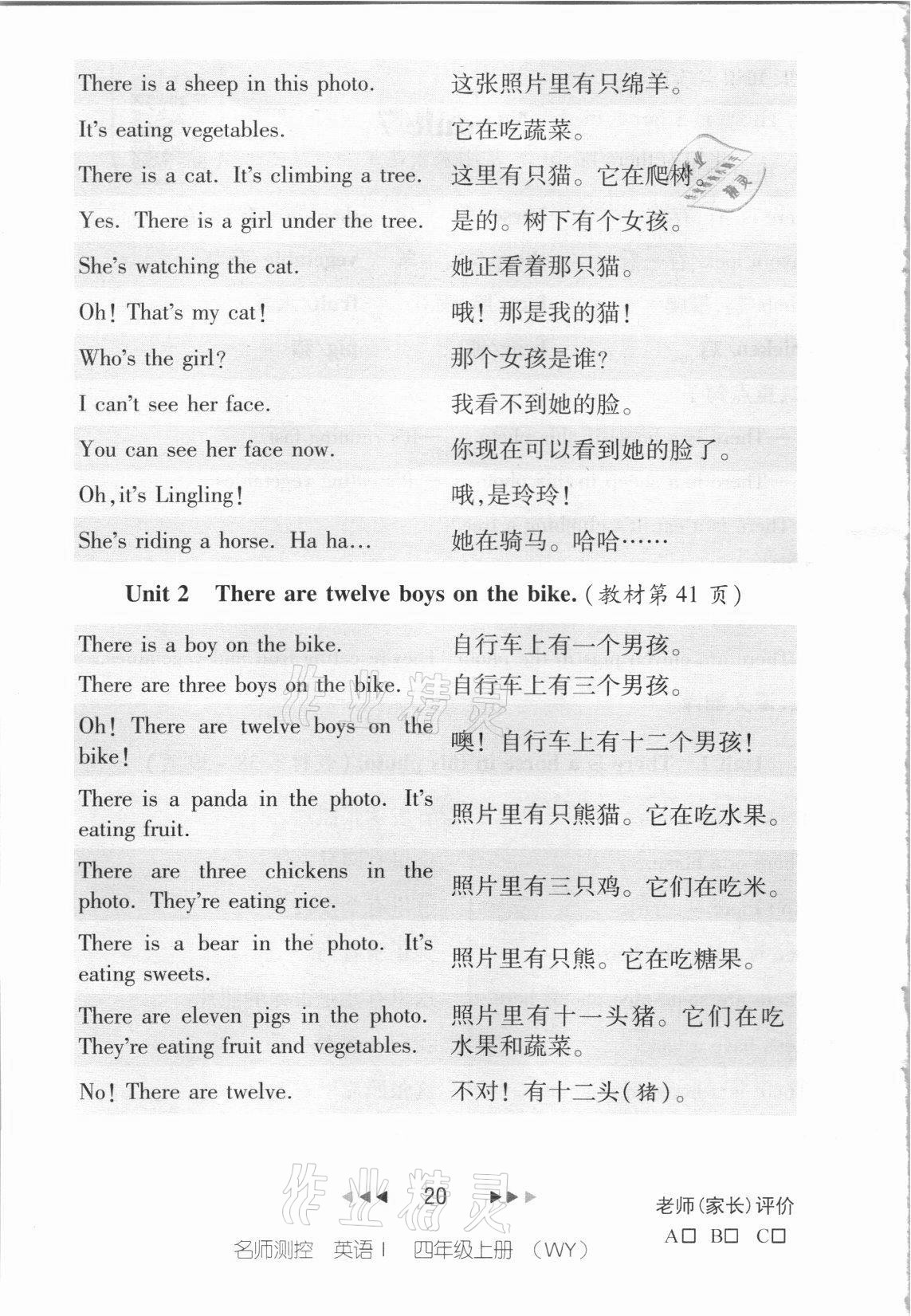 注:目前有些书本章节名称可能整理的还不是很完善,但都是按照顺序排列的,请同学们按照顺序仔细查找。练习册 2021年名师测控四年级英语上册外研版 答案主要是用来给同学们做完题方便对答案用的,请勿直接抄袭。