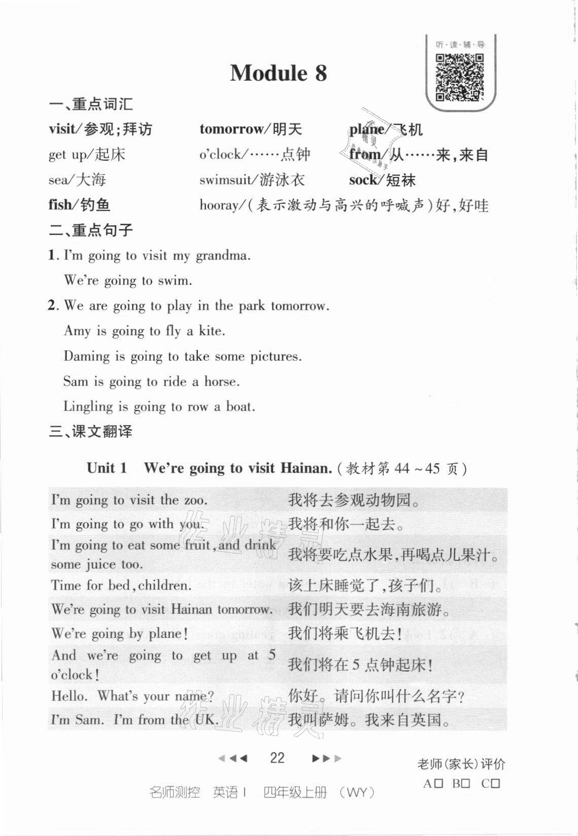 注:目前有些书本章节名称可能整理的还不是很完善,但都是按照顺序排列的,请同学们按照顺序仔细查找。练习册 2021年名师测控四年级英语上册外研版 答案主要是用来给同学们做完题方便对答案用的,请勿直接抄袭。