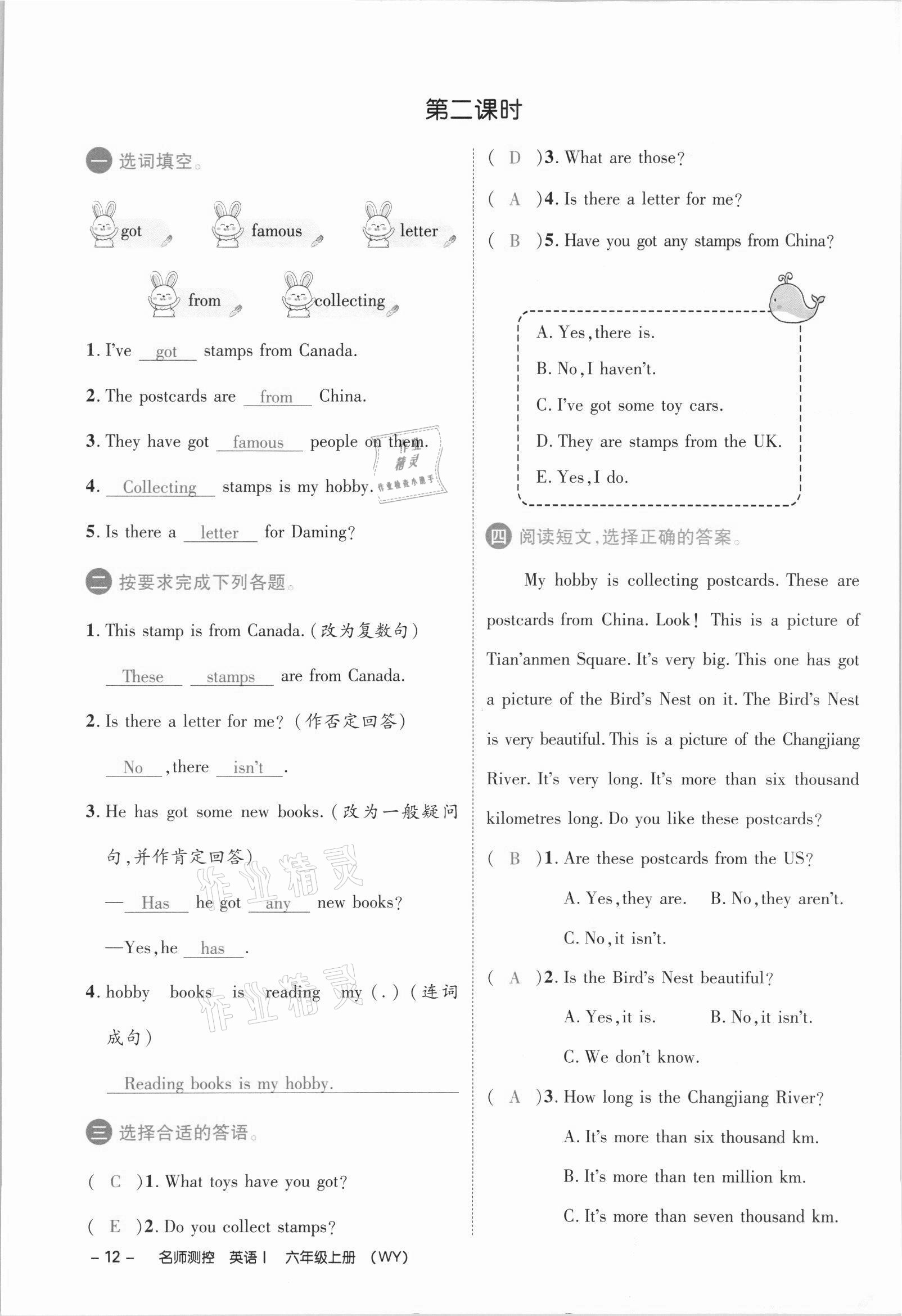 注:目前有些书本章节名称可能整理的还不是很完善,但都是按照顺序排列的,请同学们按照顺序仔细查找。练习册 2021年名师测控六年级英语上册外研版 答案主要是用来给同学们做完题方便对答案用的,请勿直接抄袭。
