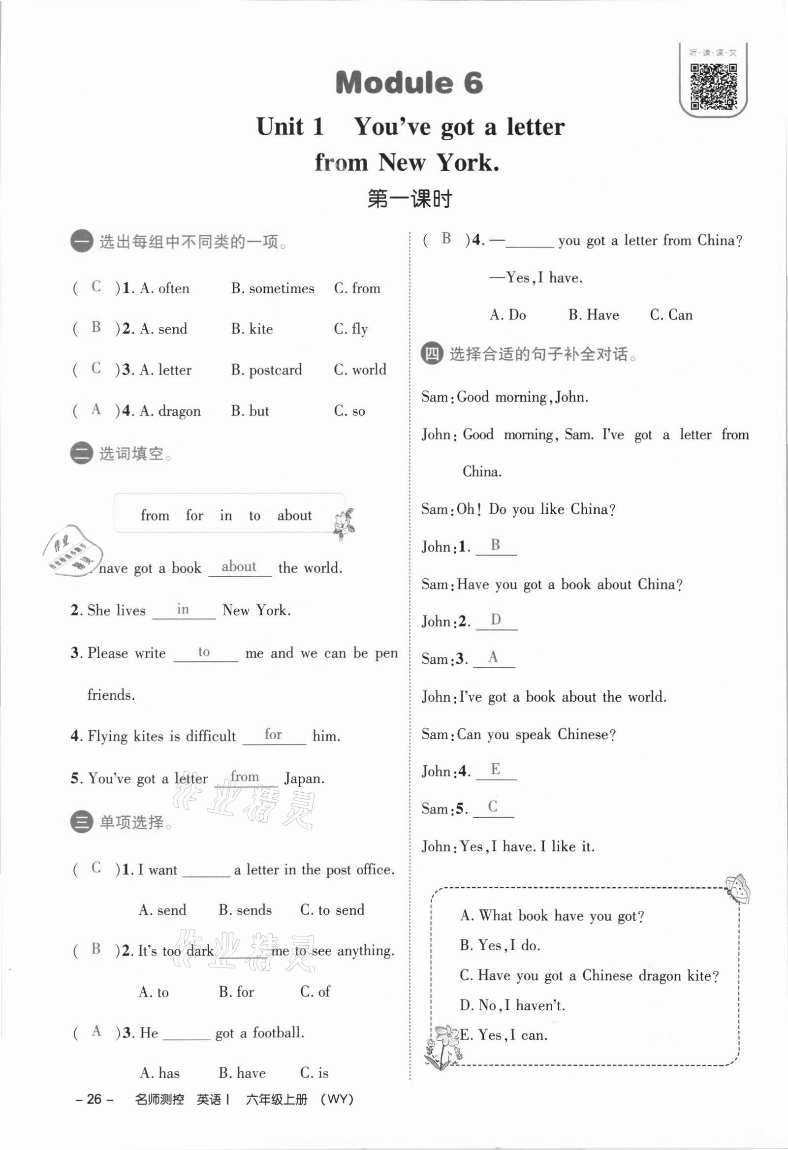 注:目前有些书本章节名称可能整理的还不是很完善,但都是按照顺序排列的,请同学们按照顺序仔细查找。练习册 2021年名师测控六年级英语上册外研版 答案主要是用来给同学们做完题方便对答案用的,请勿直接抄袭。
