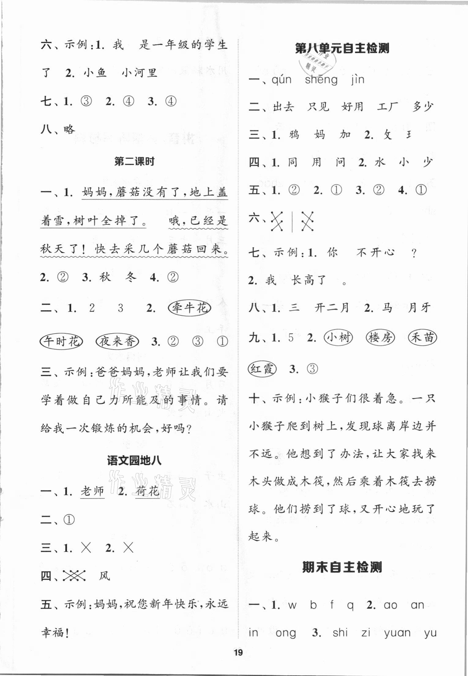 2021年金钥匙1加1课时作业一年级语文上册全国版
