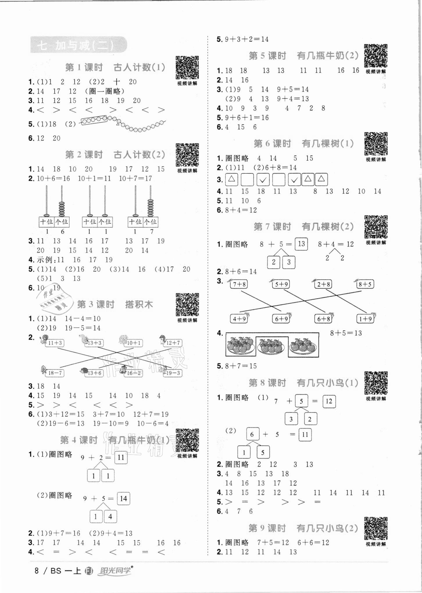 注:目前有些书本章节名称可能整理的还不是很完善,但都是按照顺序排列的,请同学们按照顺序仔细查找。练习册 2021年阳光同学课时优化作业一年级数学上册北师大版福建专版 答案主要是用来给同学们做完题方便对答案用的,请勿直接抄袭。