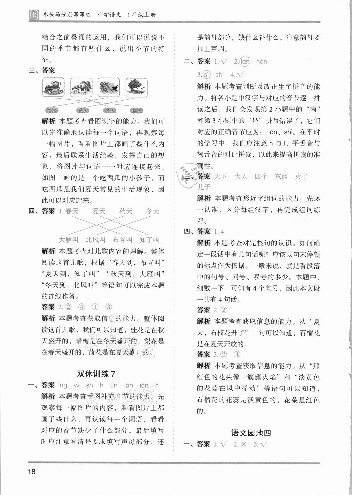 注:目前有些书本章节名称可能整理的还不是很完善,但都是按照顺序排列的,请同学们按照顺序仔细查找。练习册 2021年木头马分层课课练一年级语文上册部编版福建专版 答案主要是用来给同学们做完题方便对答案用的,请勿直接抄袭。