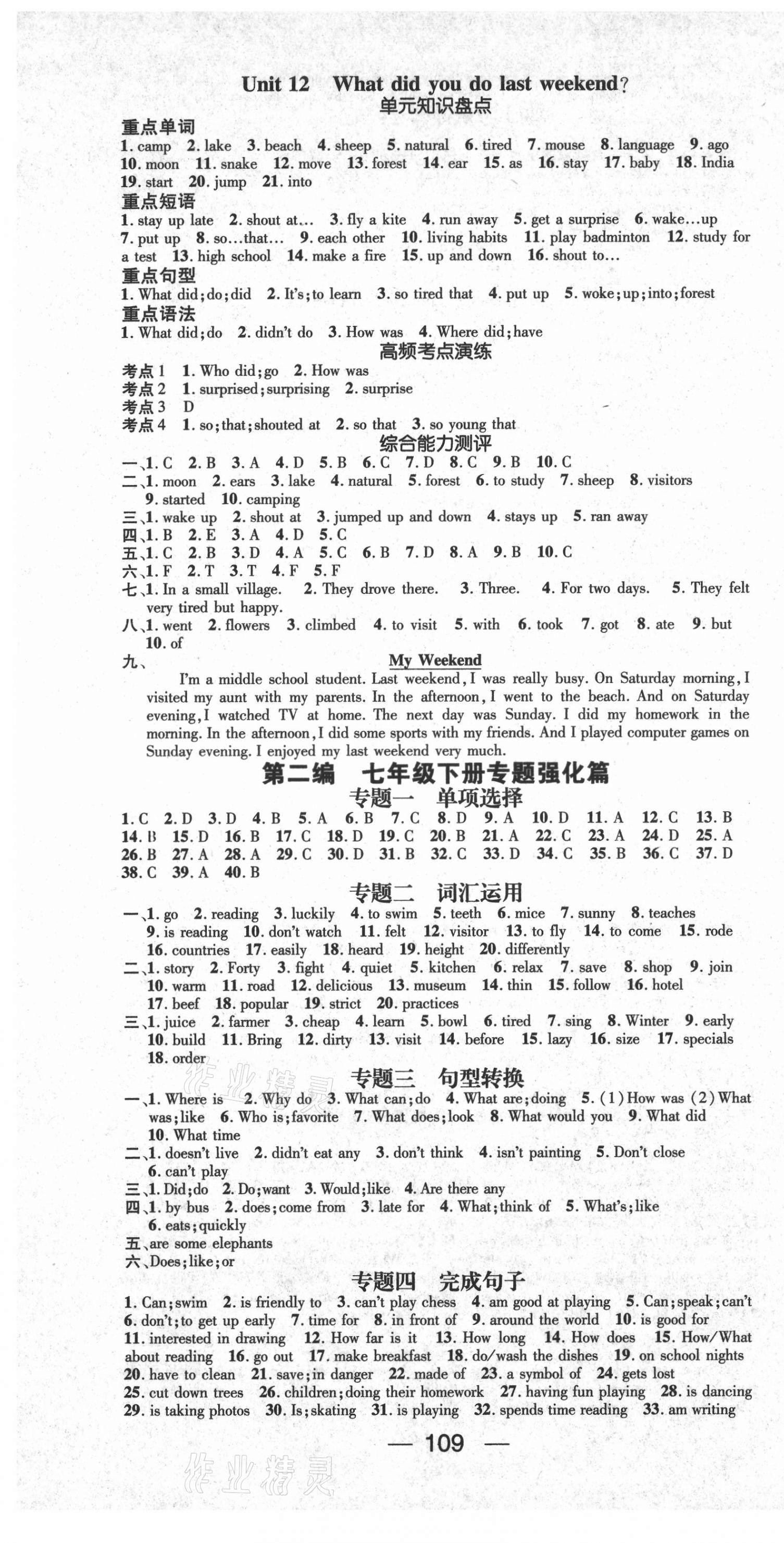 注:目前有些书本章节名称可能整理的还不是很完善,但都是按照顺序排列的,请同学们按照顺序仔细查找。练习册 2021年鸿鹄志文化期末冲刺王暑假作业七年级英语人教版湖南专版 答案主要是用来给同学们做完题方便对答案用的,请勿直接抄袭。