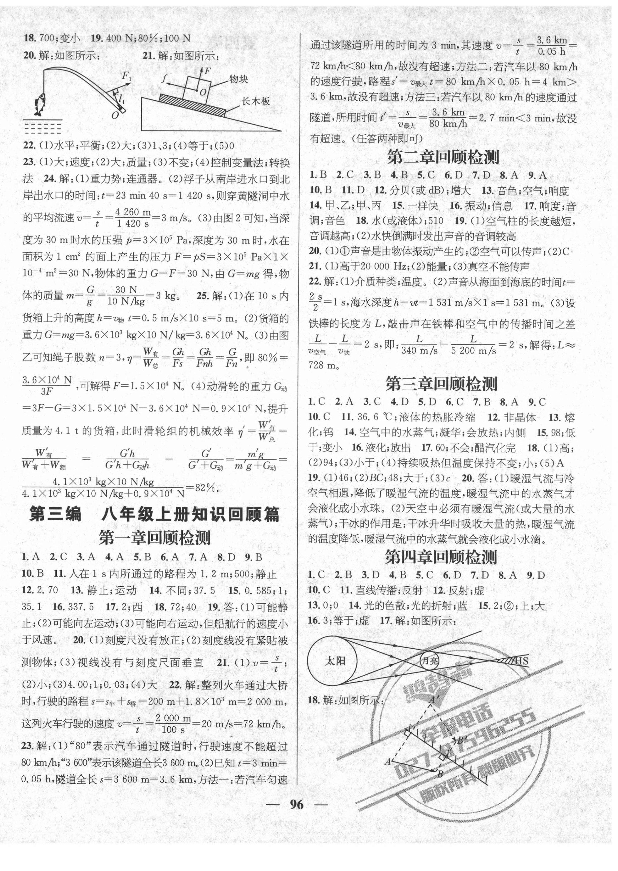 2021年鸿鹄志文化期末冲刺王暑假作业八年级物理人教版湖南专版