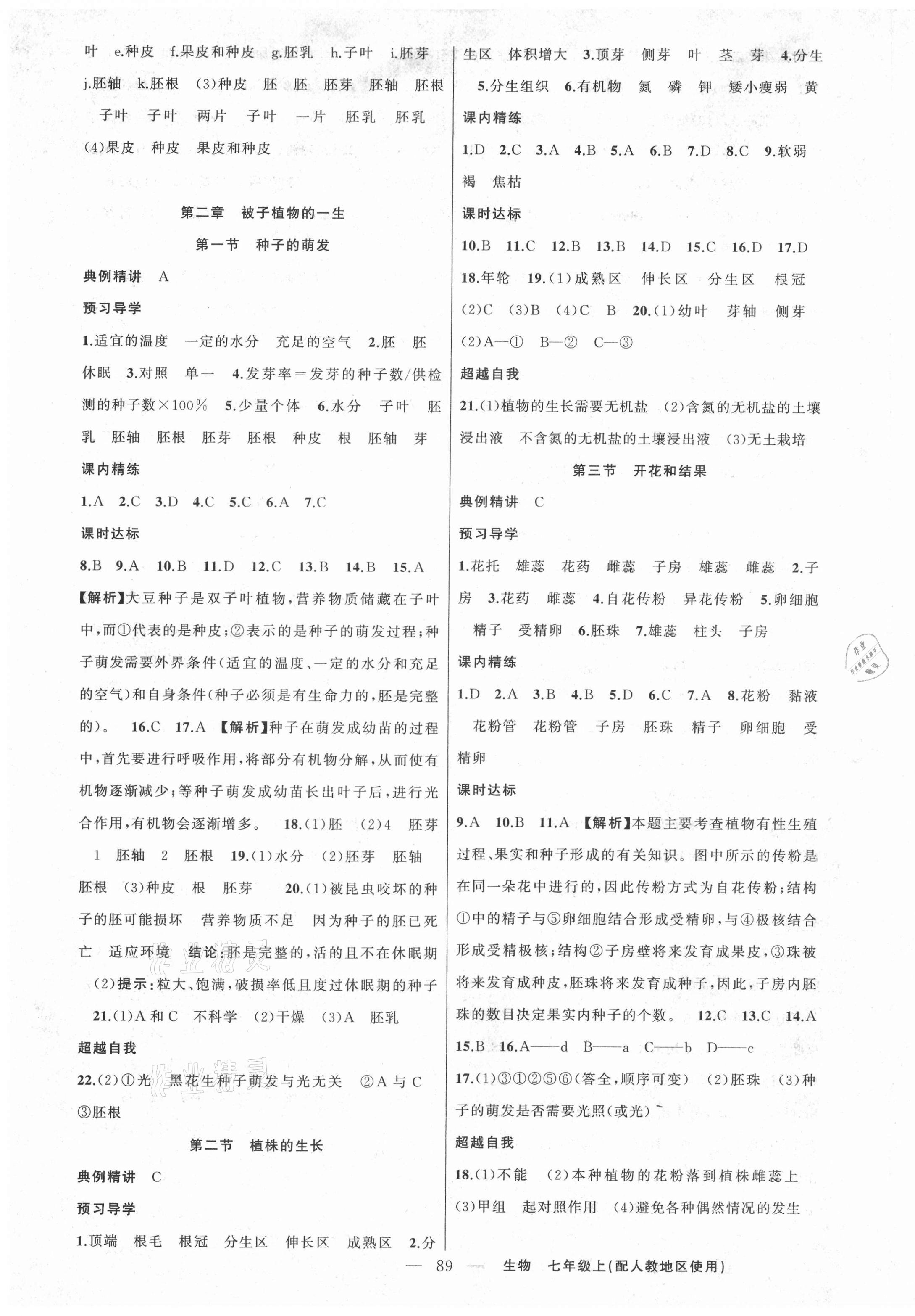 2021年黄冈金牌之路练闯考七年级生物上册人教版