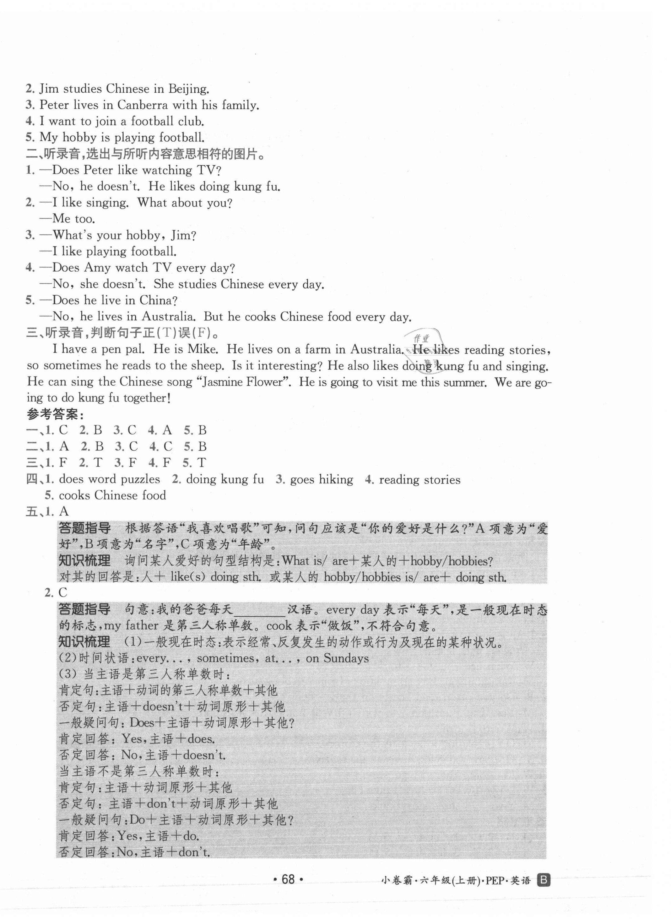 注:目前有些书本章节名称可能整理的还不是很完善,但都是按照顺序排列的,请同学们按照顺序仔细查找。练习册 2021年小卷霸六年级英语上册人教版 答案主要是用来给同学们做完题方便对答案用的,请勿直接抄袭。