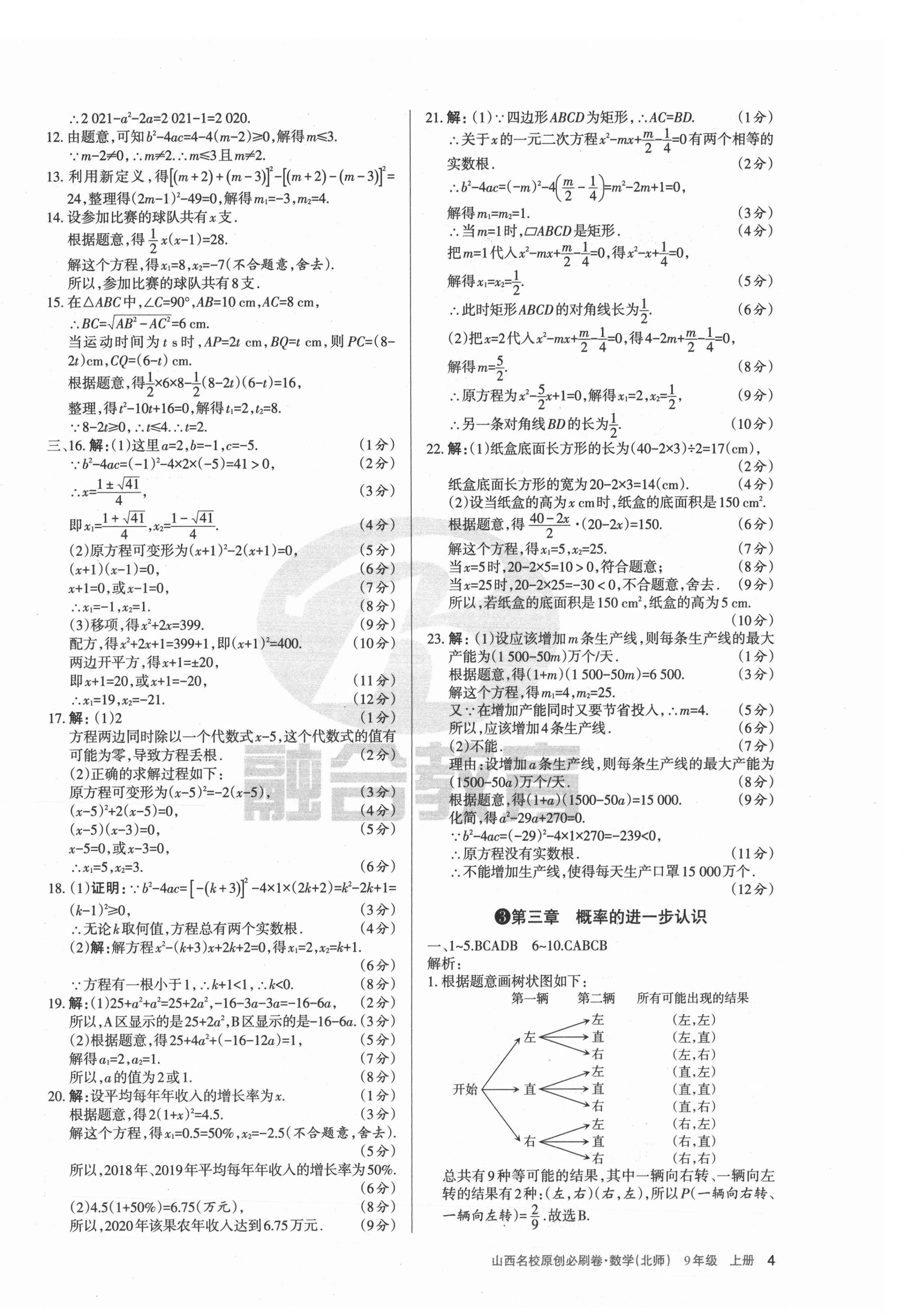 2021年山西名校原创必刷卷九年级数学上册北师大版