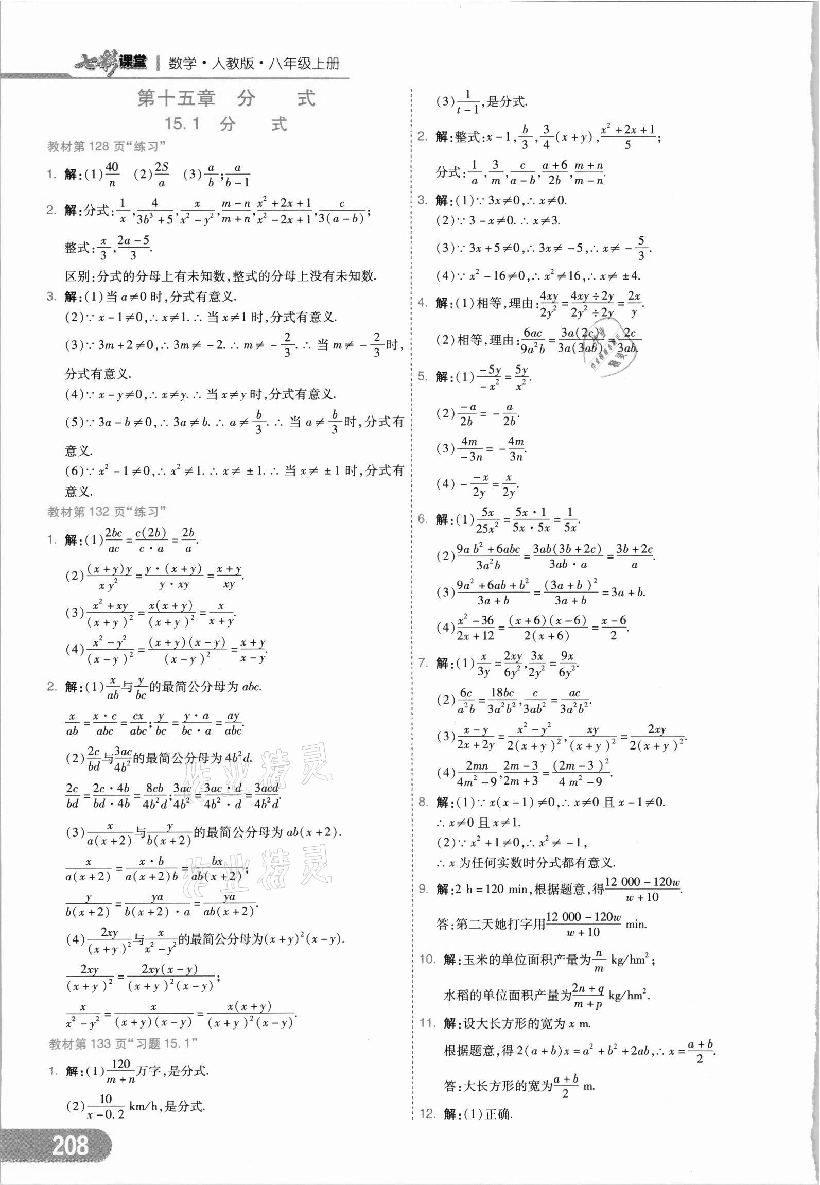 注:目前有些书本章节名称可能整理的还不是很完善,但都是按照顺序排列的,请同学们按照顺序仔细查找。练习册 2021年七彩课堂八年级数学上册人教版 答案主要是用来给同学们做完题方便对答案用的,请勿直接抄袭。