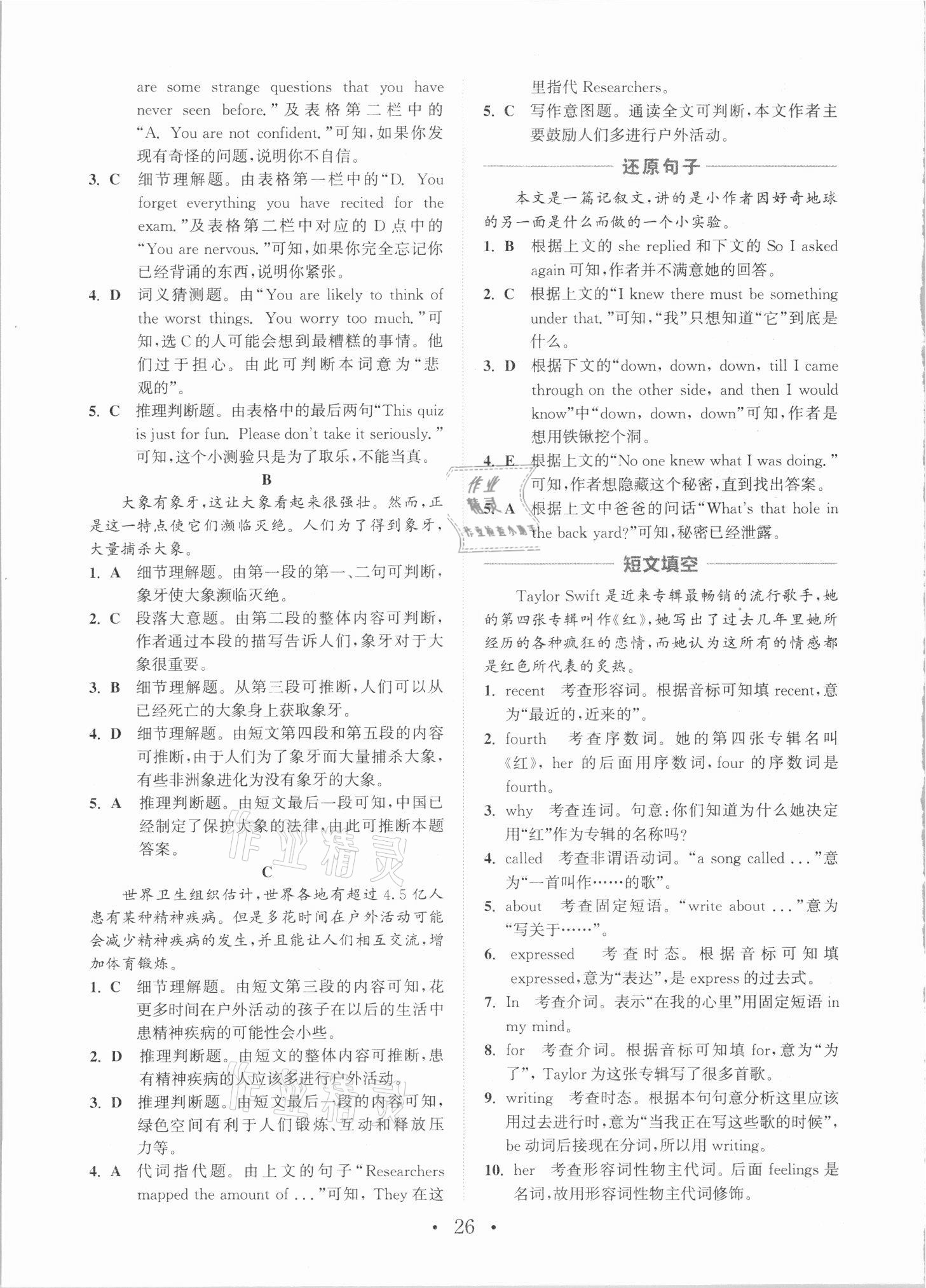注:目前有些书本章节名称可能整理的还不是很完善,但都是按照顺序排列的,请同学们按照顺序仔细查找。练习册 2021年通城学典初中英语阅读组合训练八年级福建专版 答案主要是用来给同学们做完题方便对答案用的,请勿直接抄袭。