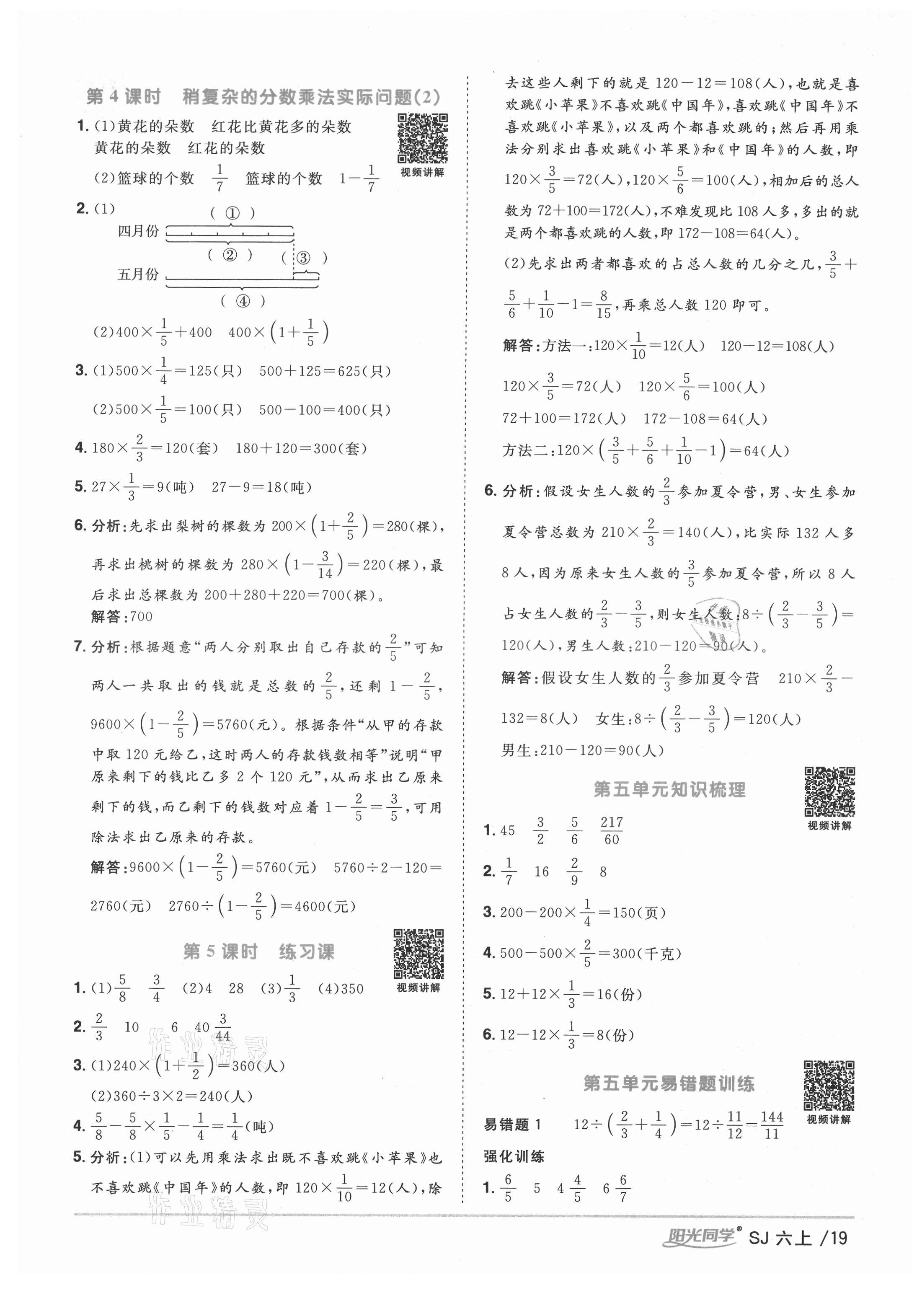 注:目前有些书本章节名称可能整理的还不是很完善,但都是按照顺序排列的,请同学们按照顺序仔细查找。练习册 2021年阳光同学课时优化作业六年级数学上册苏教版淮宿连专版 答案主要是用来给同学们做完题方便对答案用的,请勿直接抄袭。
