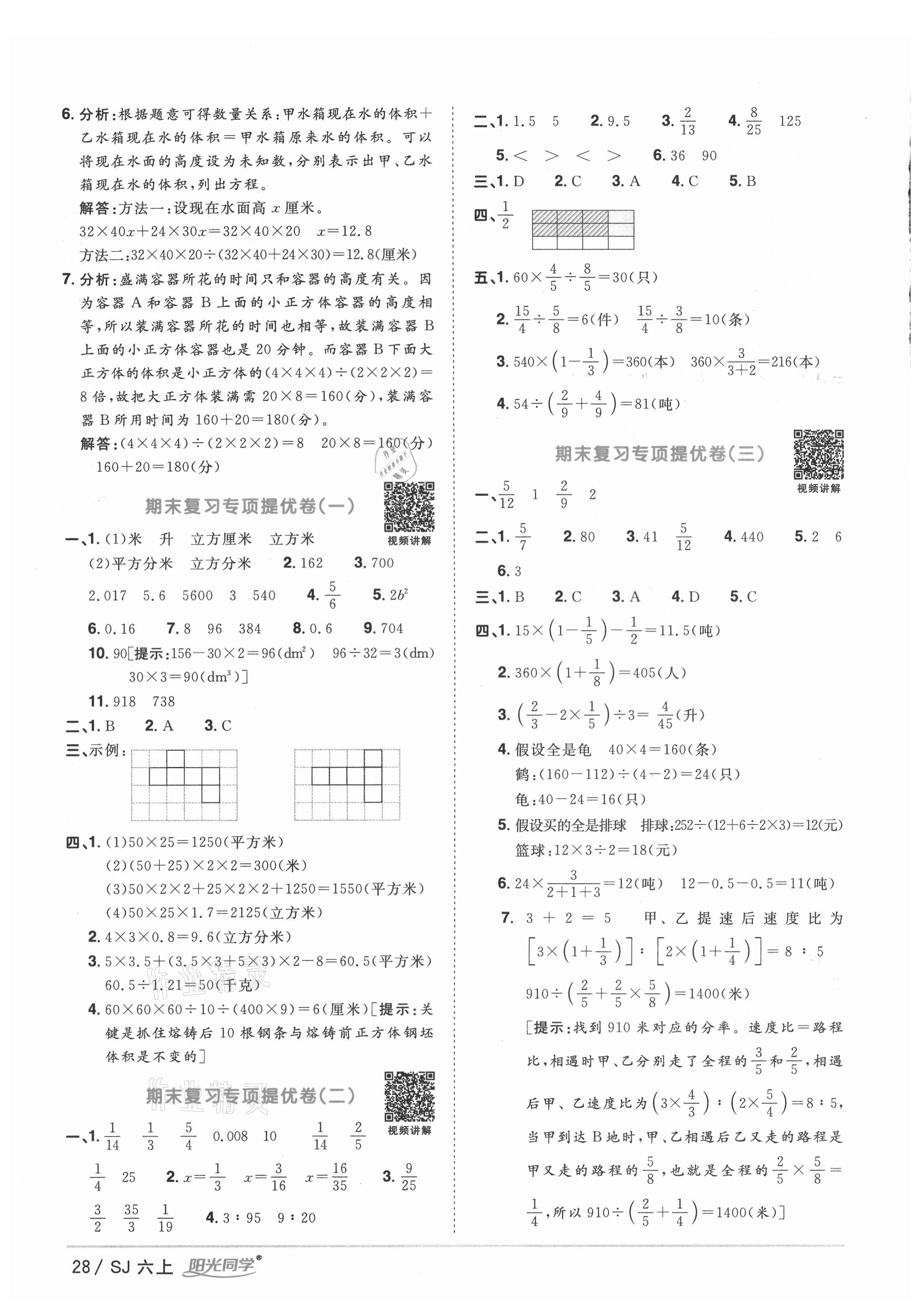 注:目前有些书本章节名称可能整理的还不是很完善,但都是按照顺序排列的,请同学们按照顺序仔细查找。练习册 2021年阳光同学课时优化作业六年级数学上册苏教版淮宿连专版 答案主要是用来给同学们做完题方便对答案用的,请勿直接抄袭。