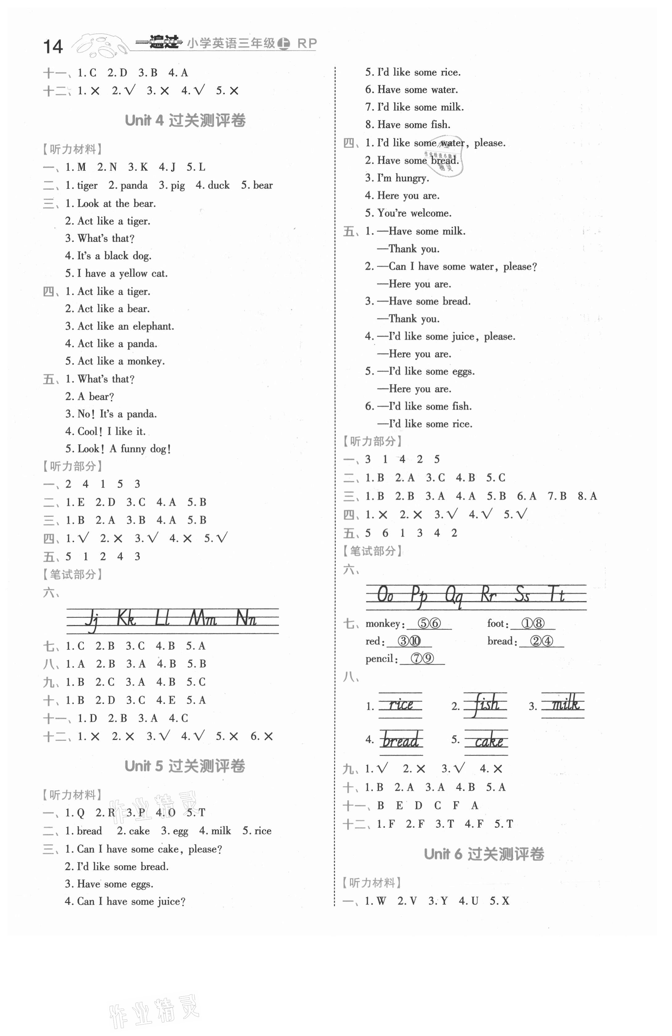 注:目前有些书本章节名称可能整理的还不是很完善,但都是按照顺序排列的,请同学们按照顺序仔细查找。练习册 2021年一遍过三年级英语上册人教版浙江专版 答案主要是用来给同学们做完题方便对答案用的,请勿直接抄袭。