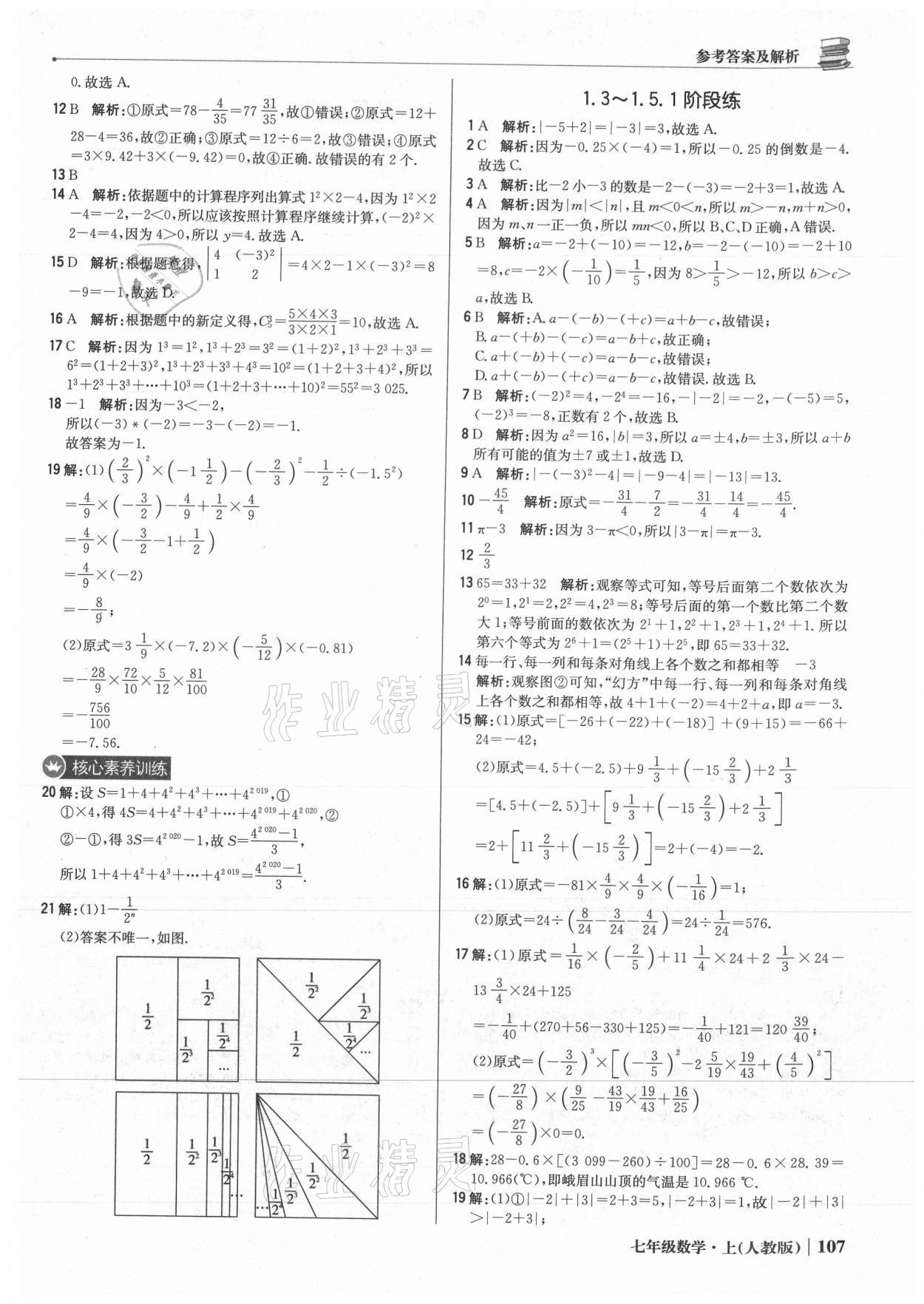 注:目前有些书本章节名称可能整理的还不是很完善,但都是按照顺序排列的,请同学们按照顺序仔细查找。练习册 2021年1加1轻巧夺冠优化训练七年级数学上册人教版 答案主要是用来给同学们做完题方便对答案用的,请勿直接抄袭。