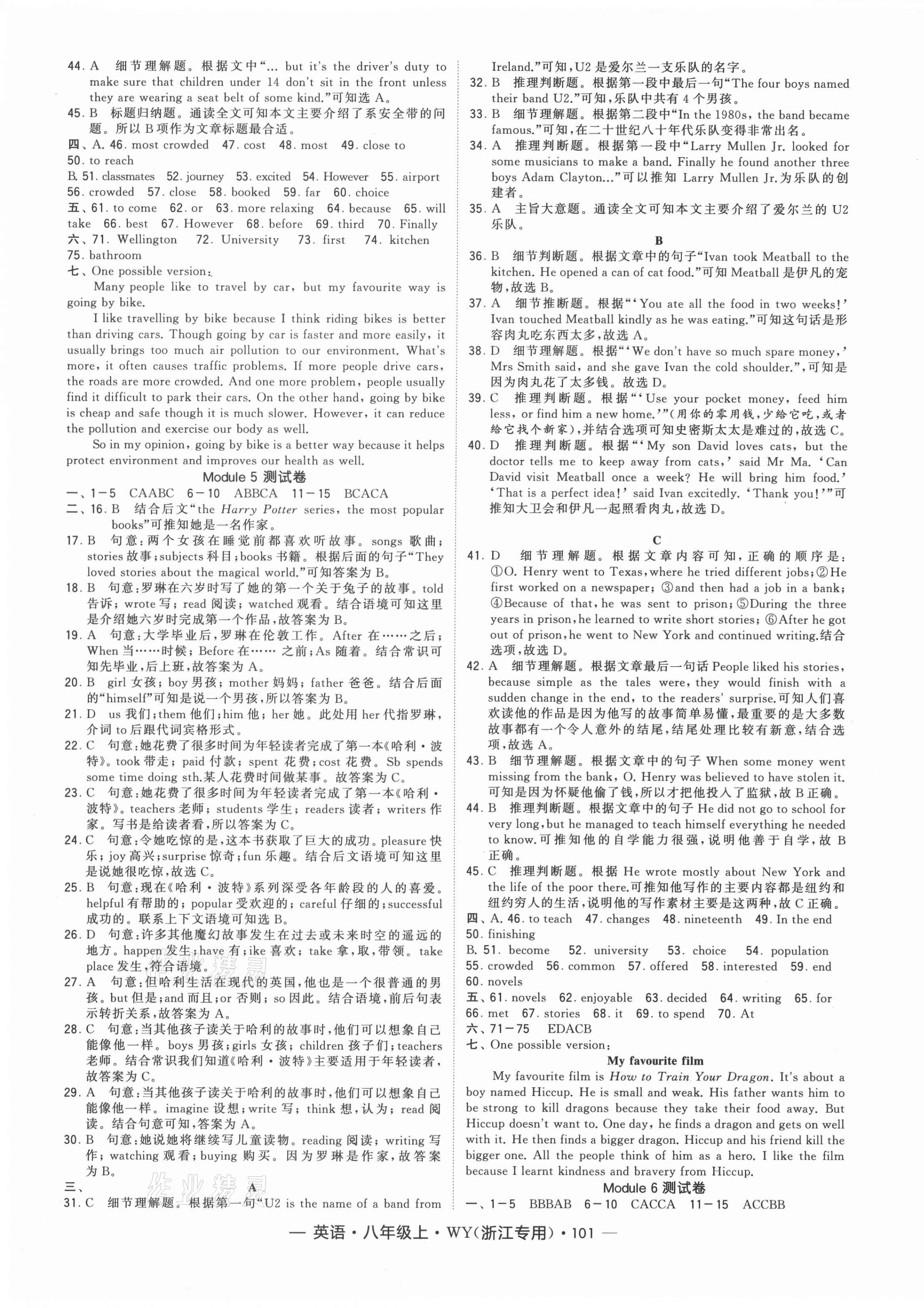 注:目前有些书本章节名称可能整理的还不是很完善,但都是按照顺序排列的,请同学们按照顺序仔细查找。练习册 2021年经纶学典学霸八年级英语上册外研版浙江专版 答案主要是用来给同学们做完题方便对答案用的,请勿直接抄袭。