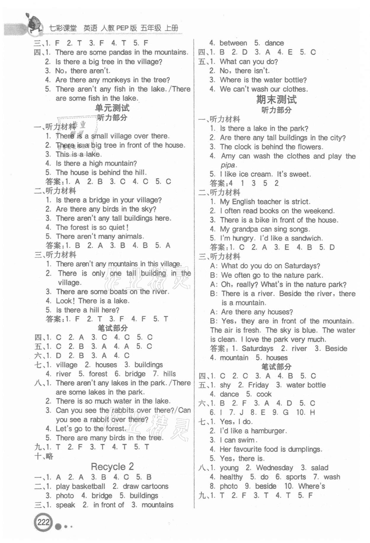 注:目前有些书本章节名称可能整理的还不是很完善,但都是按照顺序排列的,请同学们按照顺序仔细查找。练习册 2021年七彩课堂五年级英语上册人教版 答案主要是用来给同学们做完题方便对答案用的,请勿直接抄袭。
