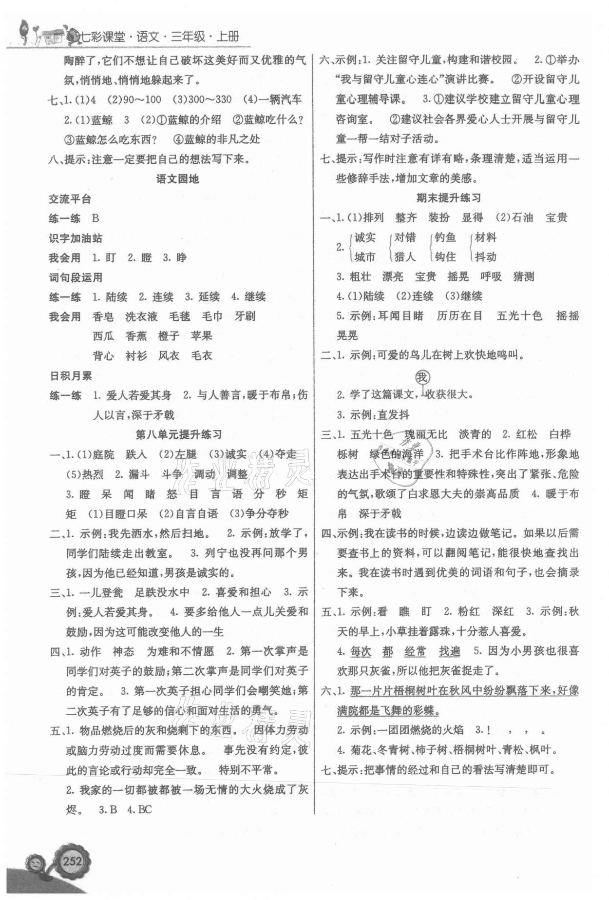 注:目前有些书本章节名称可能整理的还不是很完善,但都是按照顺序排列的,请同学们按照顺序仔细查找。练习册 2021年七彩课堂三年级语文上册人教版 答案主要是用来给同学们做完题方便对答案用的,请勿直接抄袭。