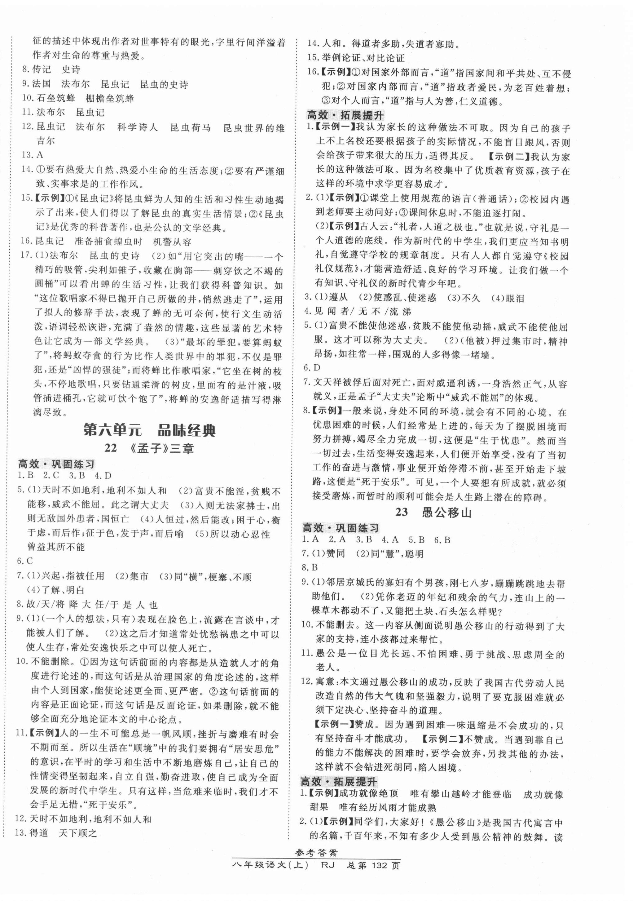 注:目前有些书本章节名称可能整理的还不是很完善,但都是按照顺序排列的,请同学们按照顺序仔细查找。练习册 2021年高效课时通10分钟掌控课堂八年级语文上册人教版 答案主要是用来给同学们做完题方便对答案用的,请勿直接抄袭。