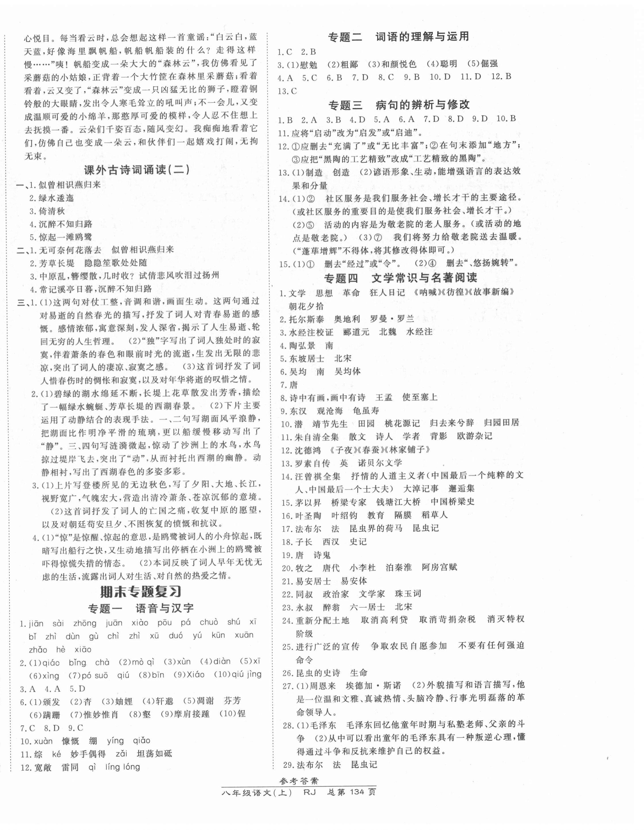 注:目前有些书本章节名称可能整理的还不是很完善,但都是按照顺序排列的,请同学们按照顺序仔细查找。练习册 2021年高效课时通10分钟掌控课堂八年级语文上册人教版 答案主要是用来给同学们做完题方便对答案用的,请勿直接抄袭。