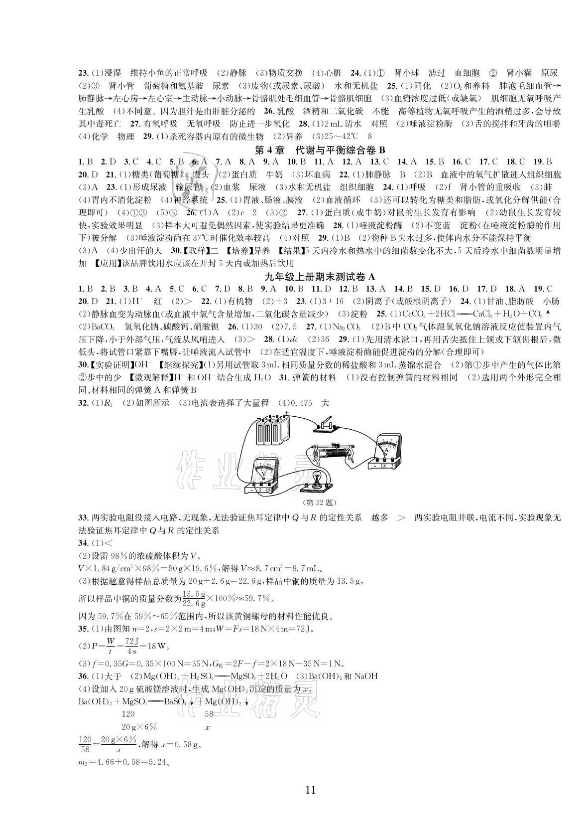 注:目前有些书本章节名称可能整理的还不是很完善,但都是按照顺序排列的,请同学们按照顺序仔细查找。练习册 2021年全优单元同步测试卷九年级科学全一册浙教版 答案主要是用来给同学们做完题方便对答案用的,请勿直接抄袭。