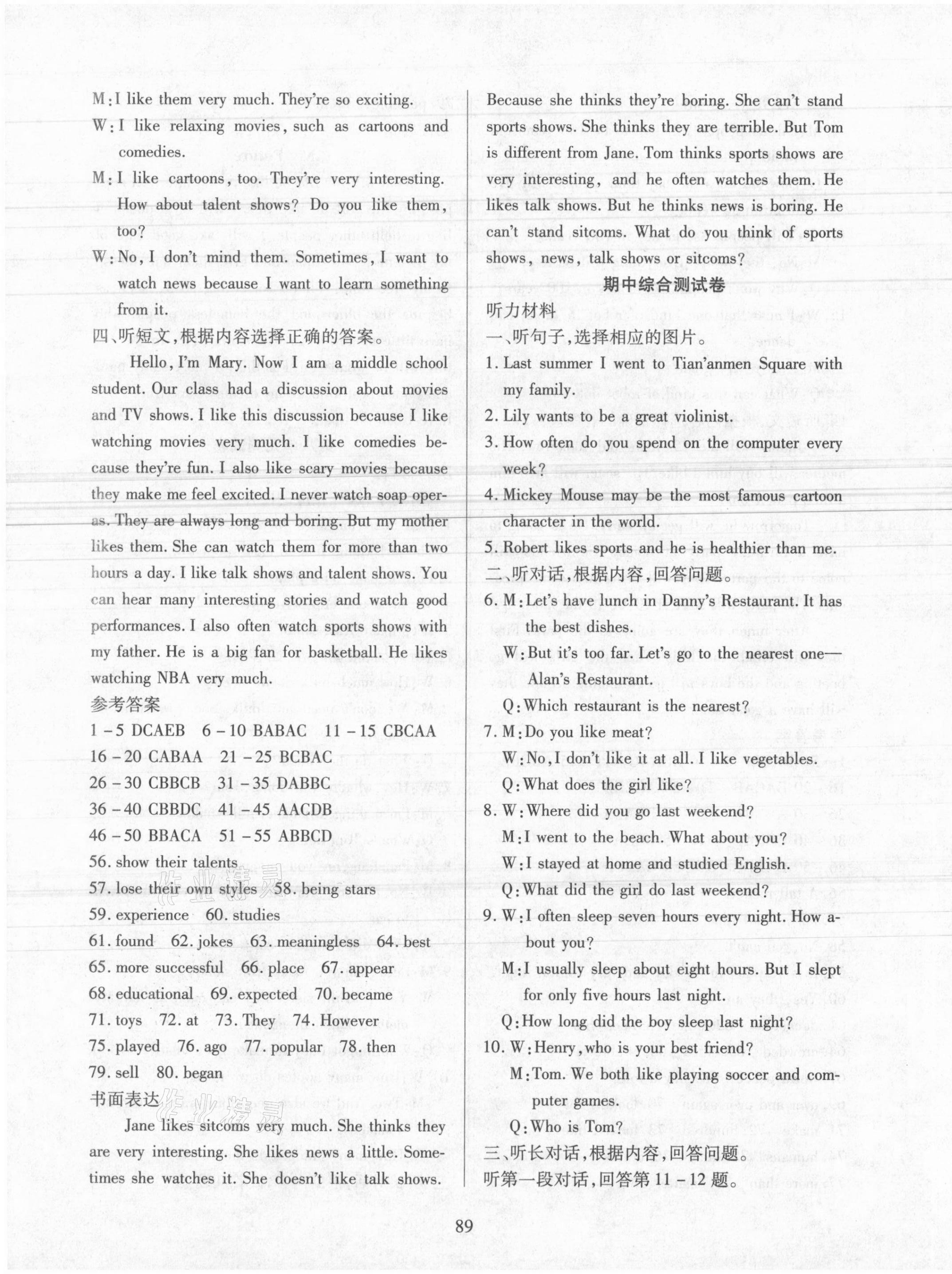 相关练习册答案