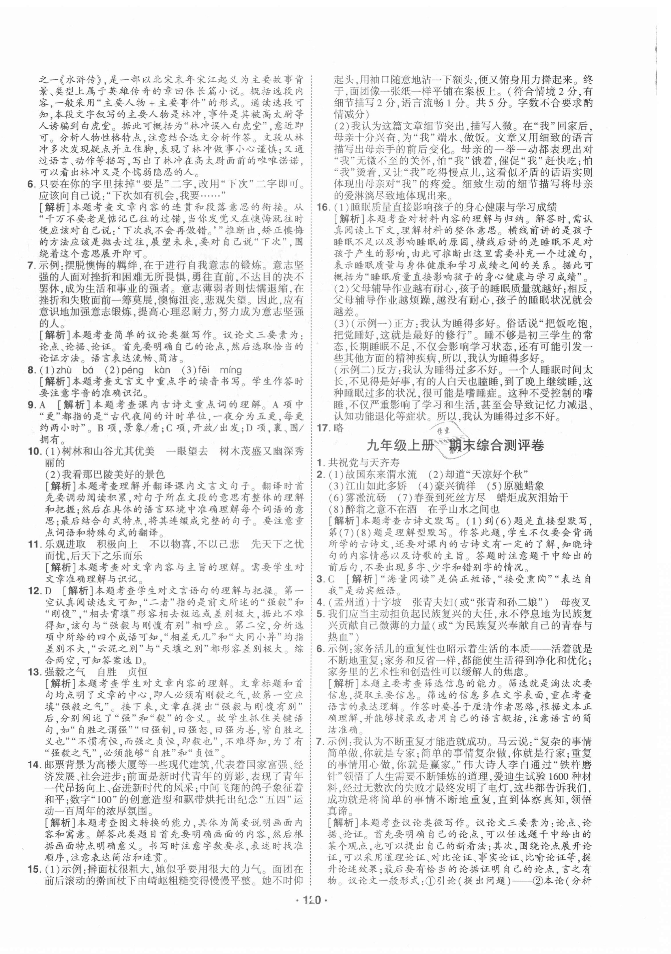 注:目前有些书本章节名称可能整理的还不是很完善,但都是按照顺序排列的,请同学们按照顺序仔细查找。练习册 2021年99加1活页卷九年级语文全一册人教版山西专版 答案主要是用来给同学们做完题方便对答案用的,请勿直接抄袭。