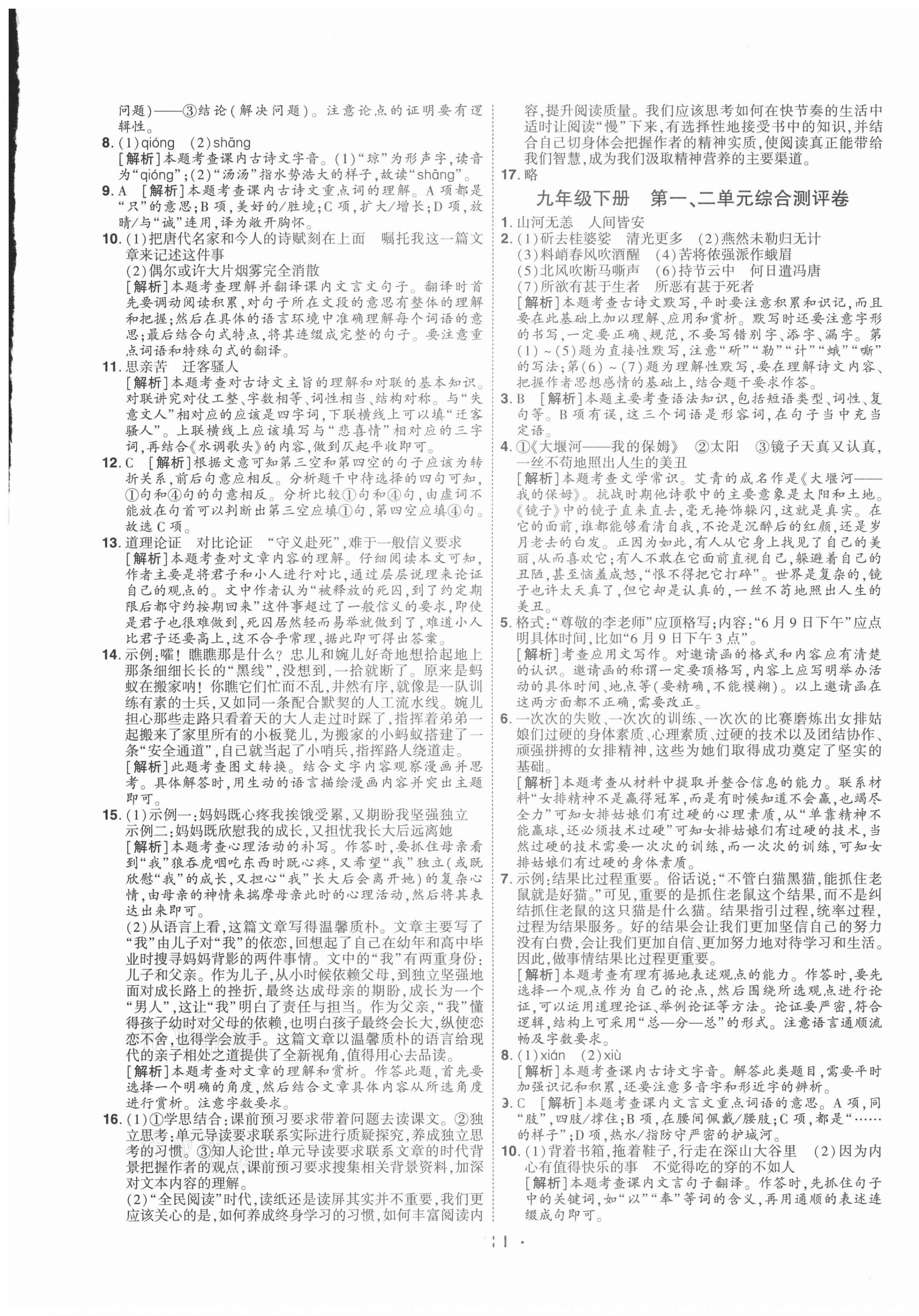 2021年99加1活页卷九年级语文全一册人教版山西专版