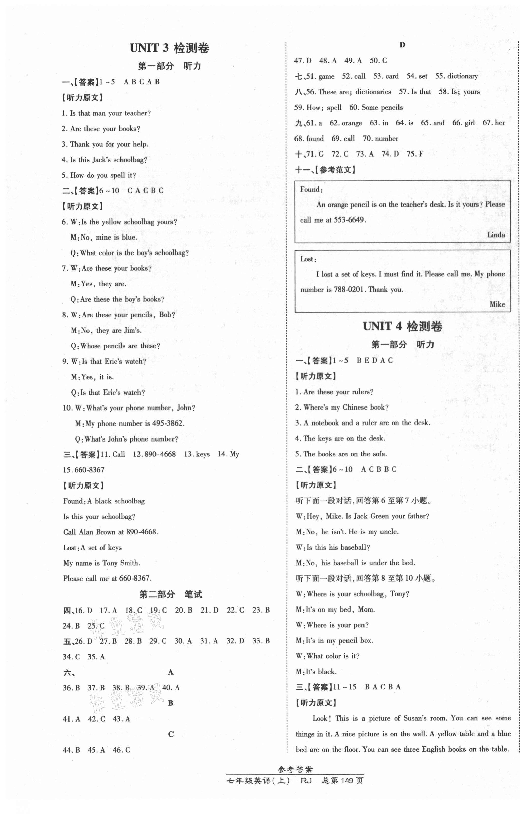 注:目前有些书本章节名称可能整理的还不是很完善,但都是按照顺序排列的,请同学们按照顺序仔细查找。练习册 2021年高效课时通10分钟掌控课堂七年级英语上册人教版 答案主要是用来给同学们做完题方便对答案用的,请勿直接抄袭。