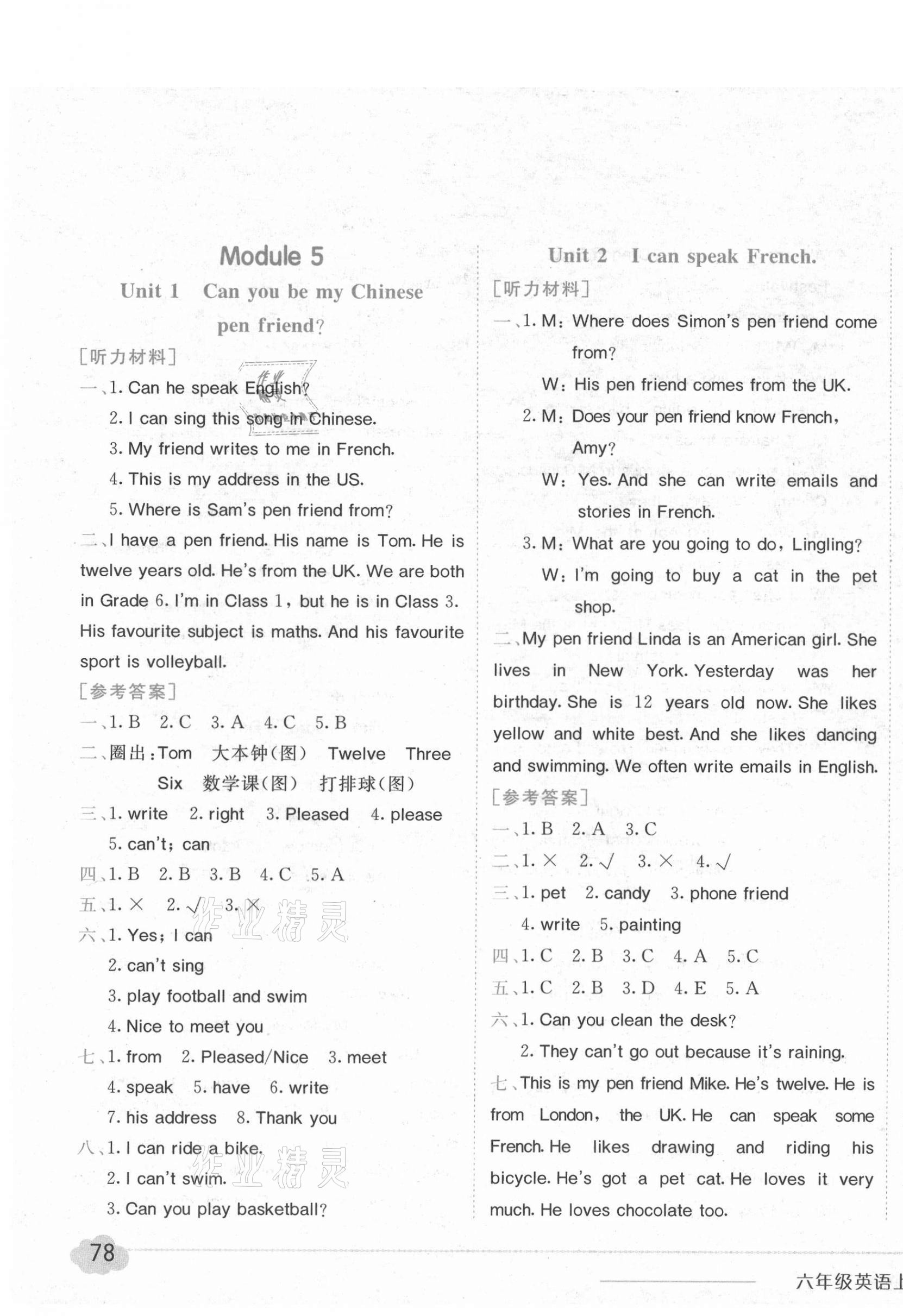 注:目前有些书本章节名称可能整理的还不是很完善,但都是按照顺序排列的,请同学们按照顺序仔细查找。练习册 2021年黄冈小状元作业本六年级英语上册外研版 答案主要是用来给同学们做完题方便对答案用的,请勿直接抄袭。